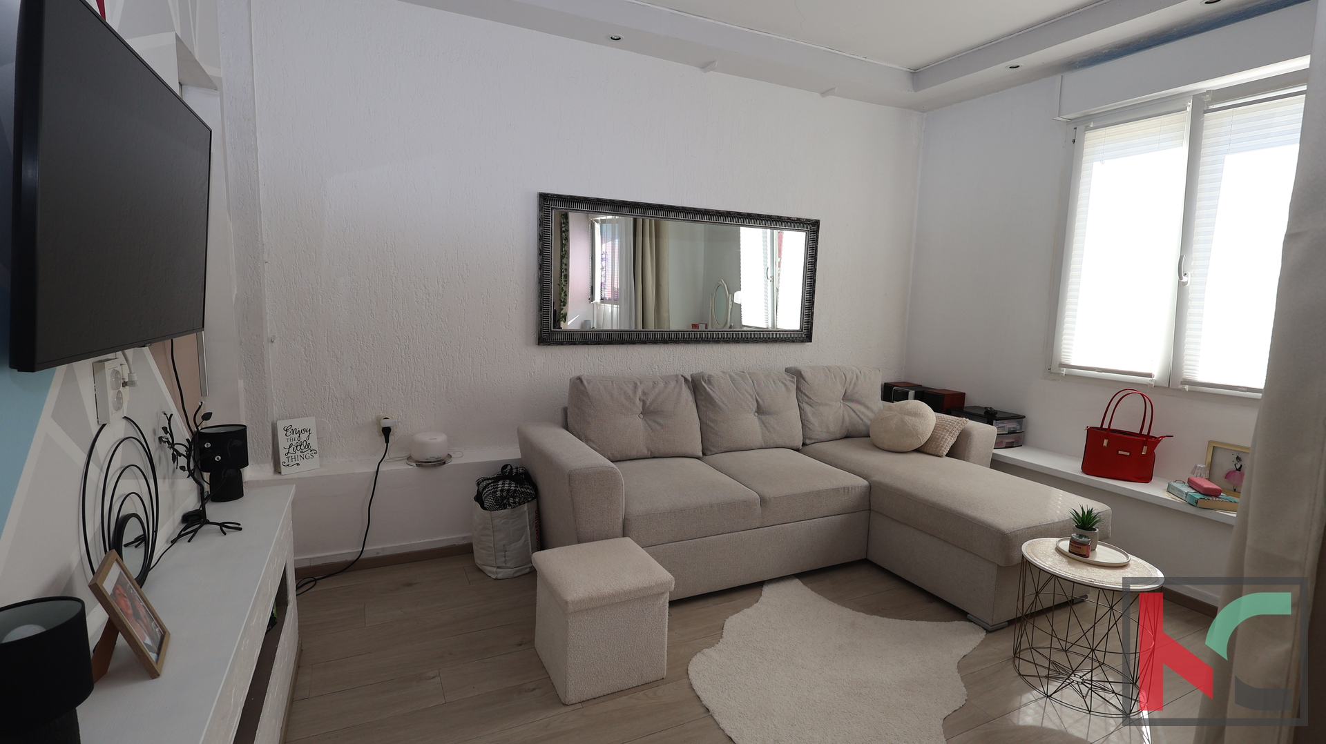 Die Immobilie befindet sich im Erdgeschoss eines kleineren Gebäudes und besteht aus einem Wohnzimmer, einer Küche in Verbindung mit dem Esszimmer, einem Badezimmer und einem Schlafzimmer.