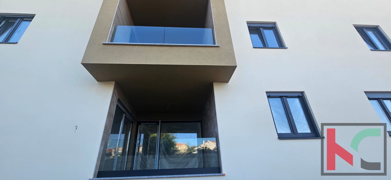 Stan je opremljen podnim grijanjem, inverter klima uređajem za grijanje i hlađenje, PVC troslojnom stolarijom u antracit boje te demit fasadom od 10cm.