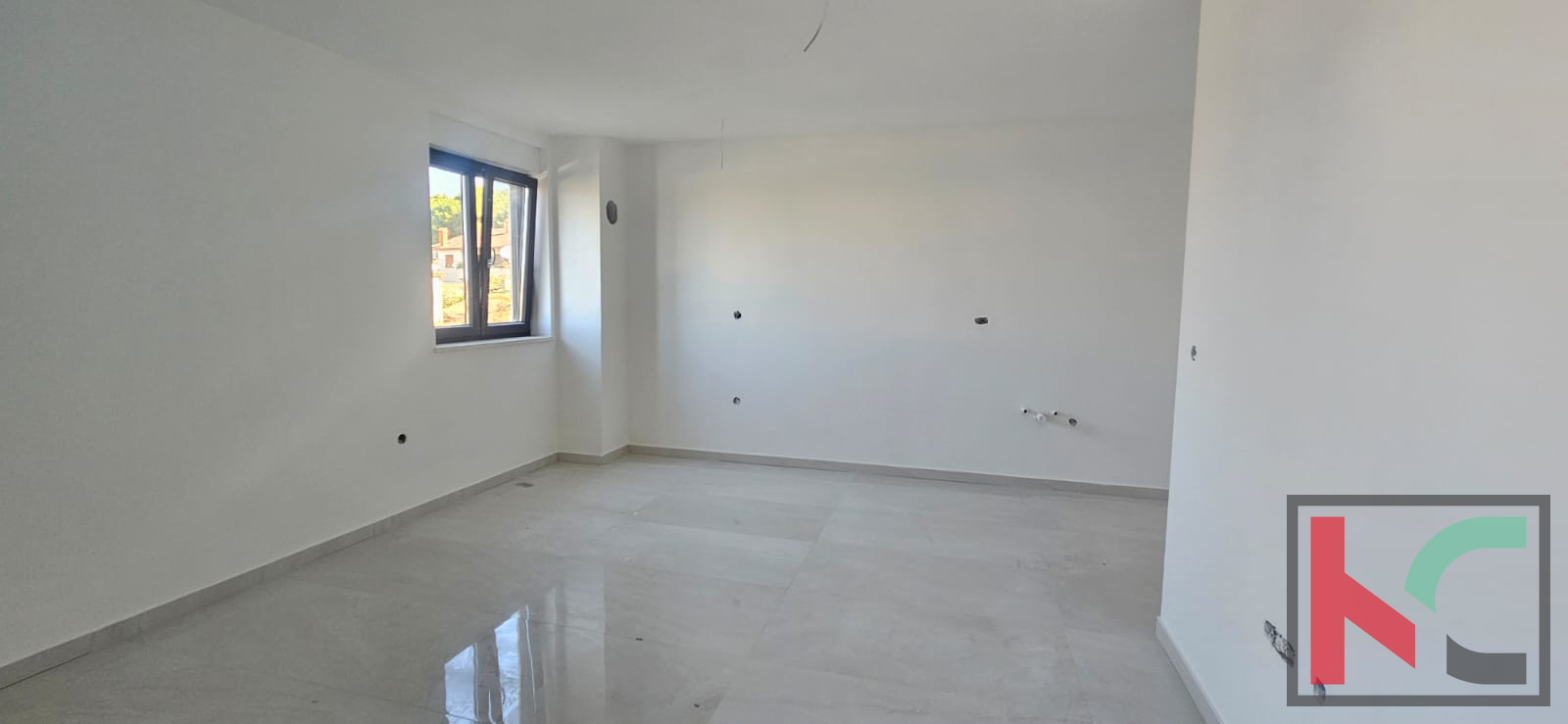 Predmetni stan se nalazi u prizemlju, okrenut je zapadu, ima 54,20m2 te se sastoji od lođe, spavaće sobe, open space prostora kuhinje i dnevnog boravka te kupaone.