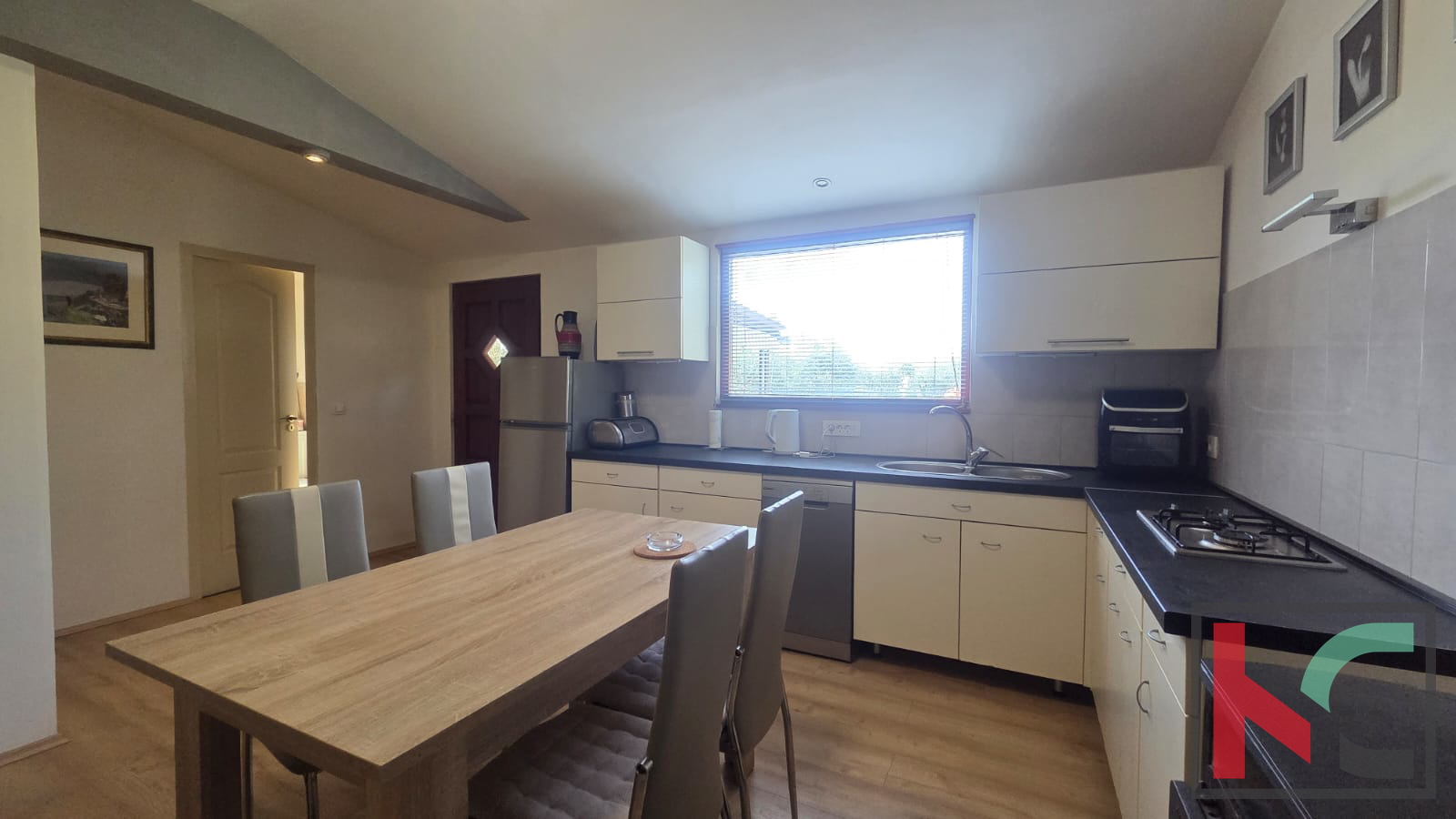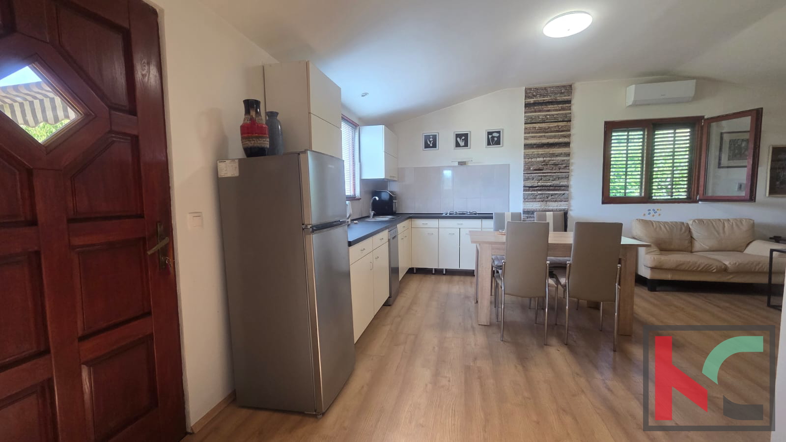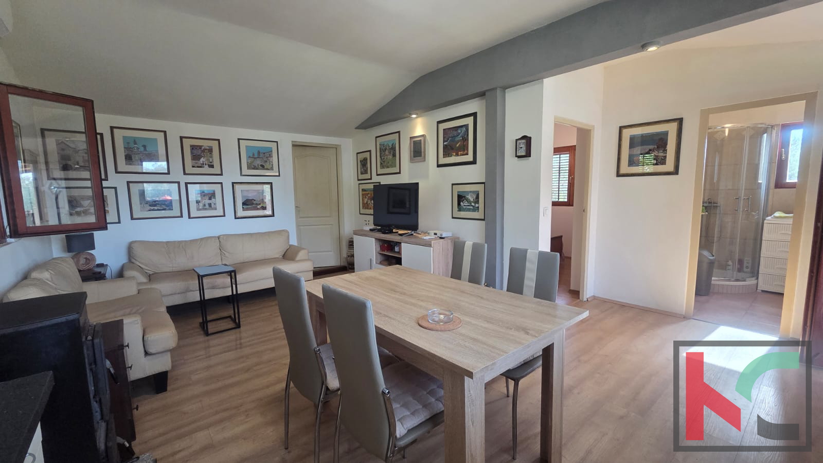 Kuća je izgrađena 2010 i renovirana 2024 godine, ima urednu dokumentaciju i svoj priključak sa strujom i vodom. Sastoji se od dnevnog boravka sa kuhinjom i blagovaonom, komotne spavaće sobe, ureda koji može biti druga spavaća soba i ostave. Natkrivena terasa ima ljetnu kuhinju a pored se nalazi roštilj. Kuća se prodaje namještena i opremljena.Grijanje je na kruta goriva, a tu je i klima. Na kući se nalaze solarni paneli, dok je na parceli provedana voda po cijelom imanju za poljoprivredu, odnosno u ovom slučaju za zalijvanje maslina.