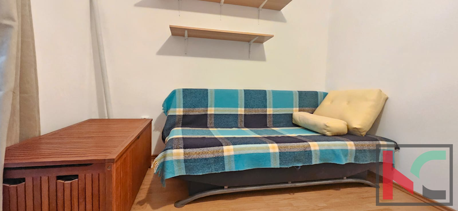 Stan se prodaje namješten i opremljen kućanskim aparatima. U stanu je jedan klima uređaj za grijanje i hlađenje. Nalazi se u mirnom dijelu Medulina, a udaljen svega 10 minuta od centra. Na okučnici zgrade su i parkirna mjesta koja pripadaju stanarima.
