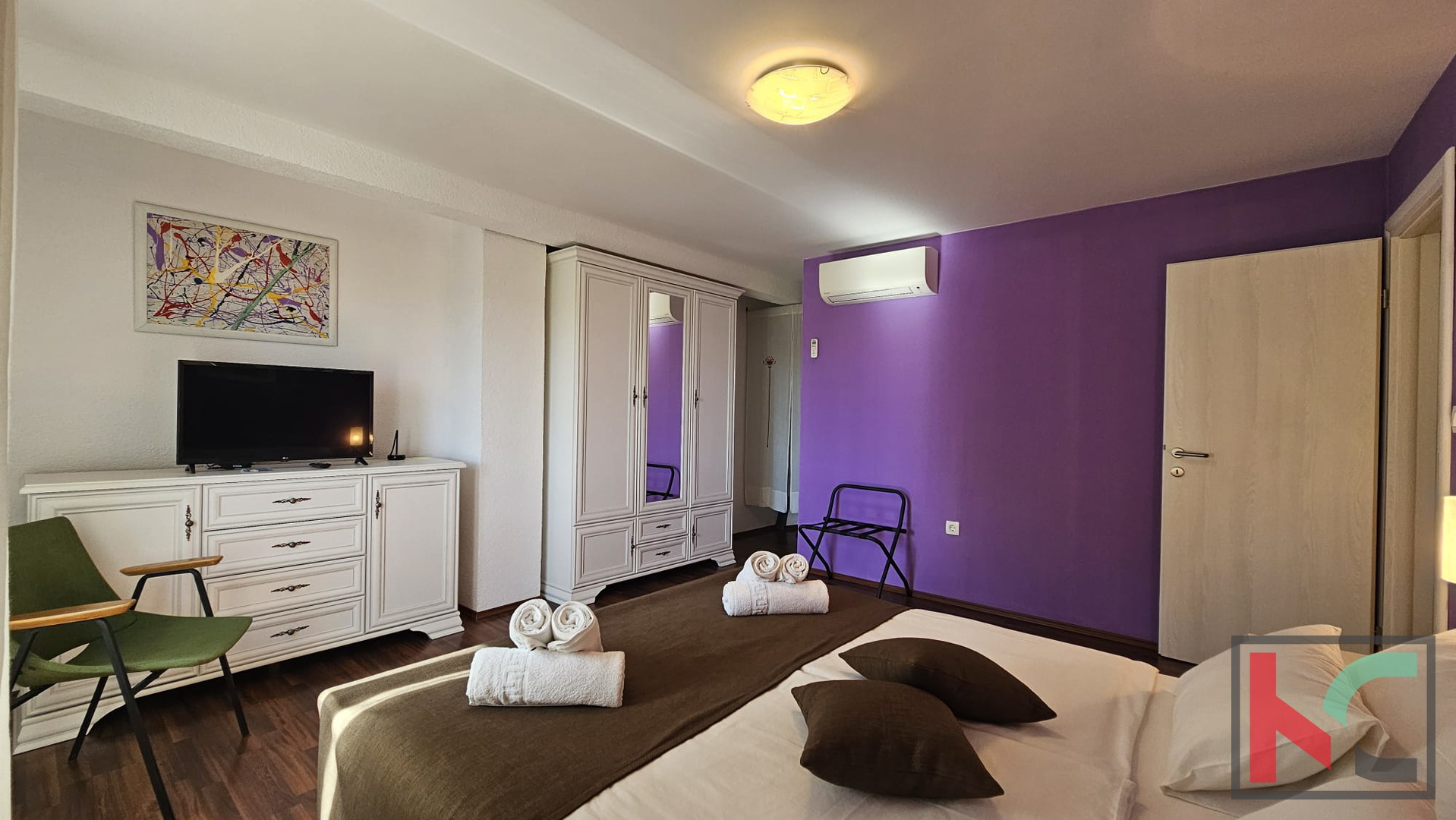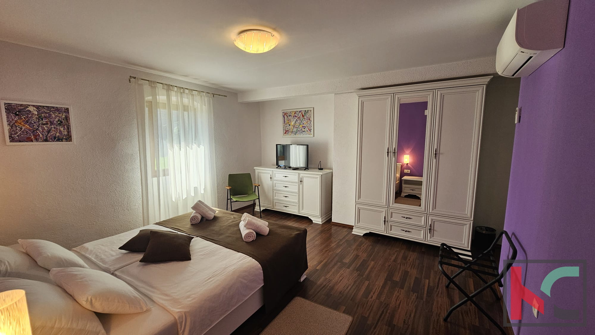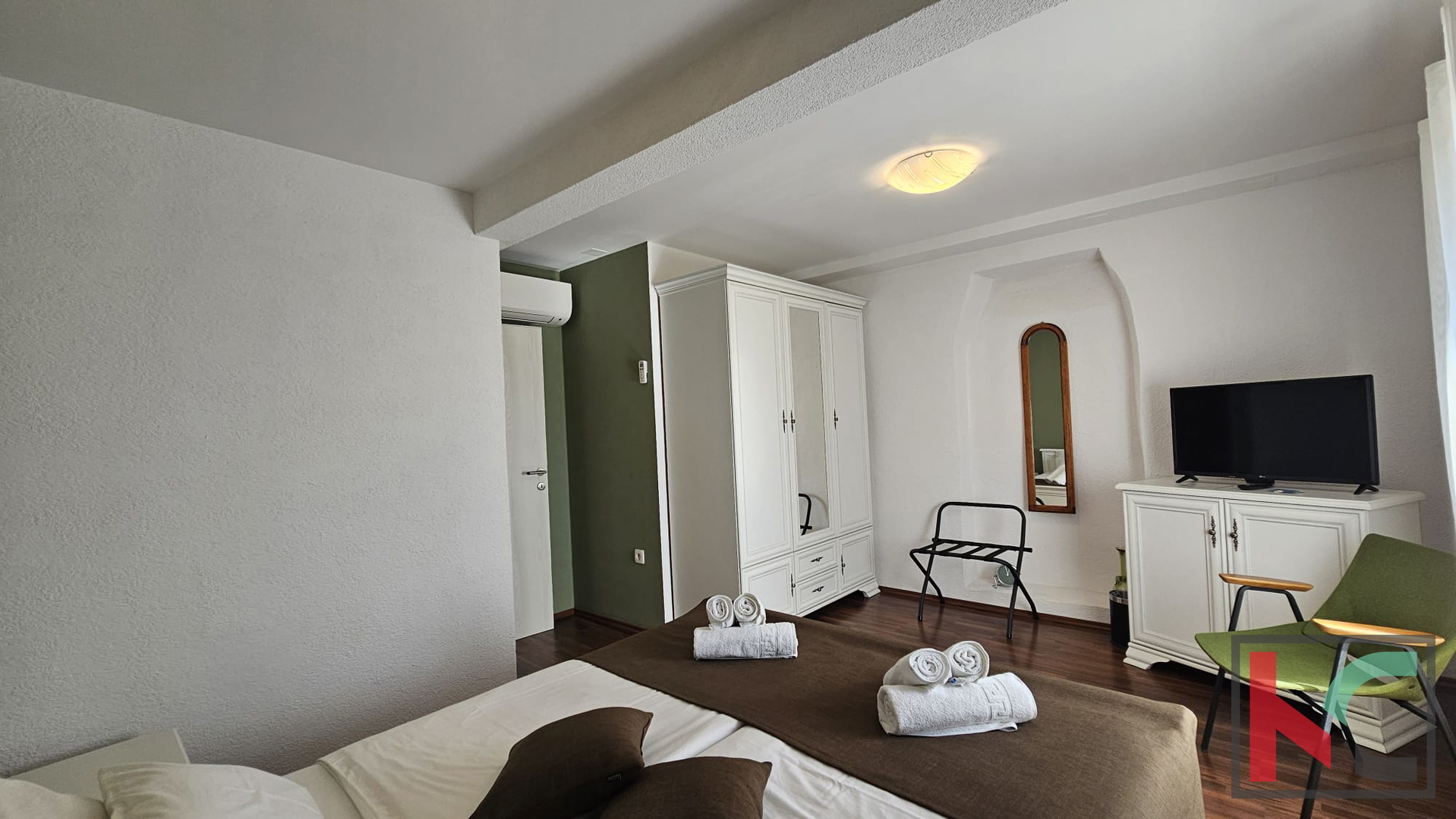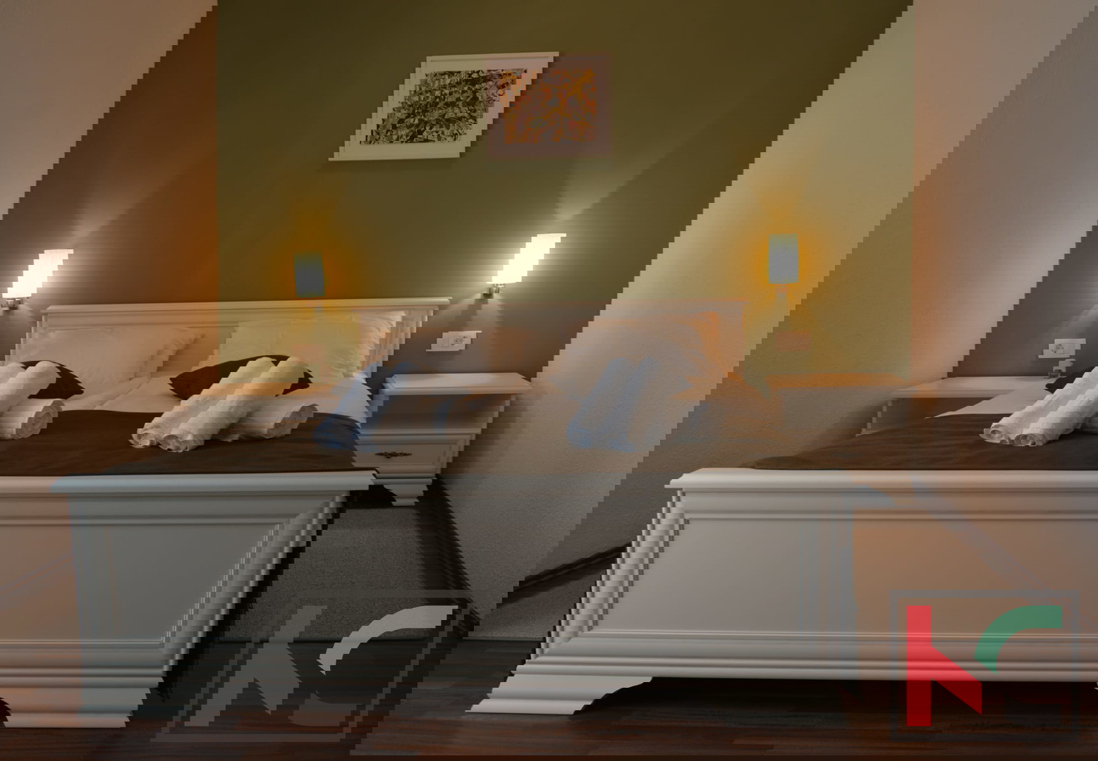 Unutarnje stepenište vodi do spavaćeg dijela. Tu su se smjestile dvije vrlo ugodno uređene spavaće sobe te dodatna kupaonica što omogućava komfor. Regulacija topline osigurana je sa tri zasebne klimatske jedinice. Kuća je potpuno namještena te se kao takva prodaje što omogućava budućim vlasnicima korištenje u minimalnom roku bez dodatnih ulaganja. Parkirno mjesto dostupno je na javnoj površini pored kuće.