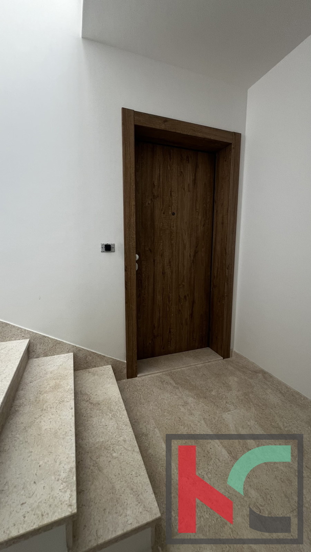 Prodaje se moderan stan u novogradnji, u manjoj stambenoj zgradi sa sveukupno četiri stambene jedinice, smješten na prvom katu od dva.