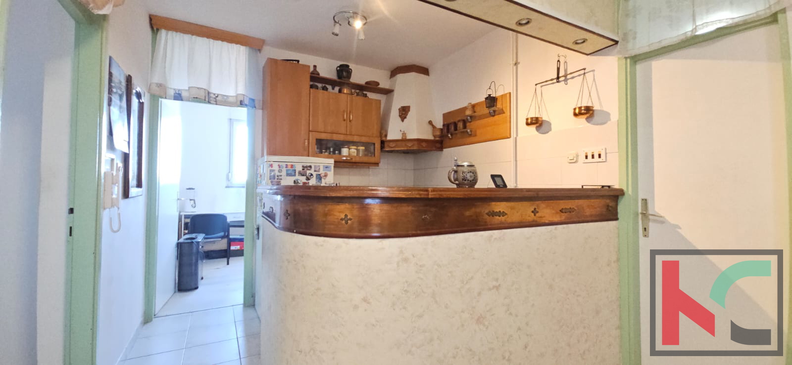 Prodajemo stan na zadnjem katu stambene zgrade u vrlo atraktivnom naselju Veruda. Stan je površine 55m2 i sastoji se od ulaznog hodnika, dvije spavaće sobe, kupaone kuhinje i blagovaone i dnevne sobe iz koje je izlaz na zatvorenu lođu sa koje se pruža fantastičan pogled na grad. Iz spavaće sobe se također pruža panoramski pogled na gradsku luku što dodatno doprinosi ekskluzivnosti ove nekretnine. Stan je u naravi veći za 2,1 m2, koji je dograđen 2003. godine i fizički je povezan sa stanom.