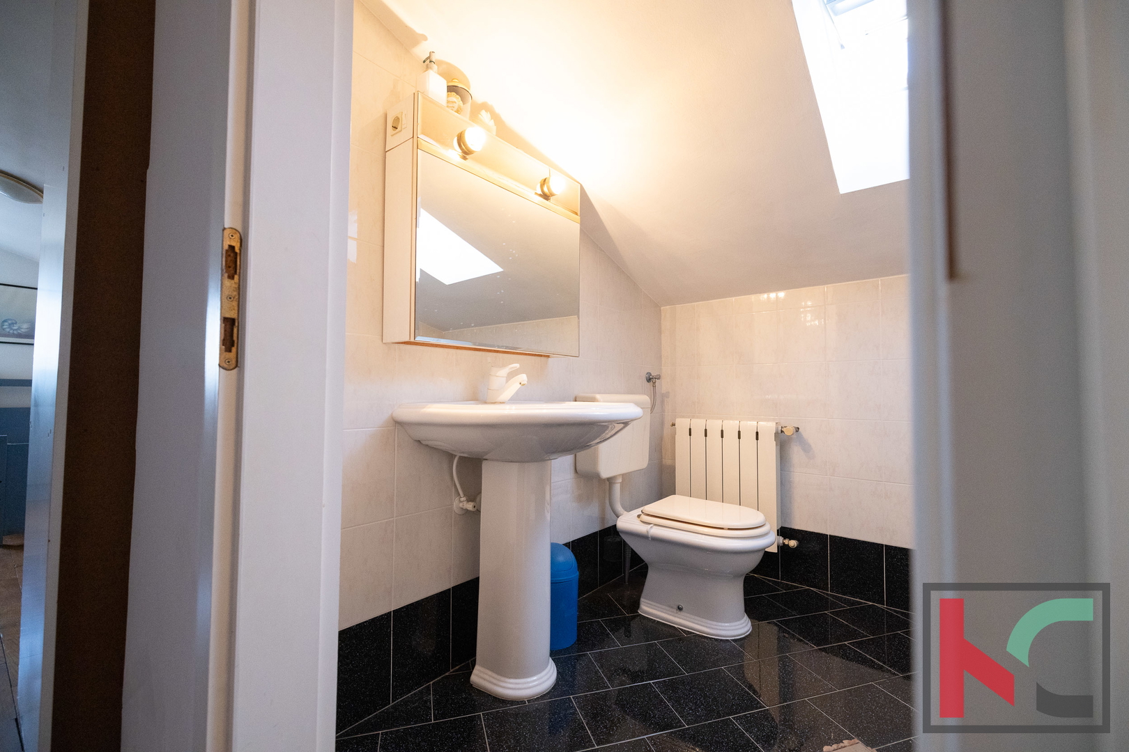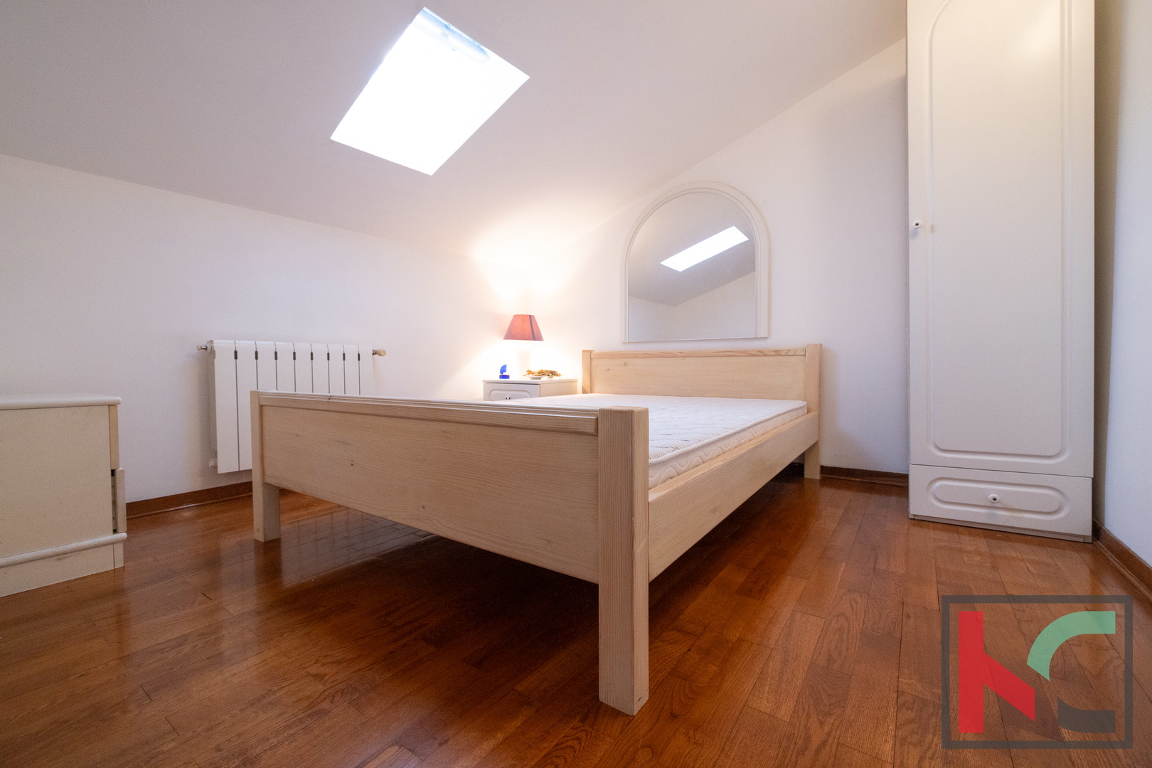 - Mansarda: manja kuhinja, tri spavaće sobe, kupaonica s tušem i WC-om.