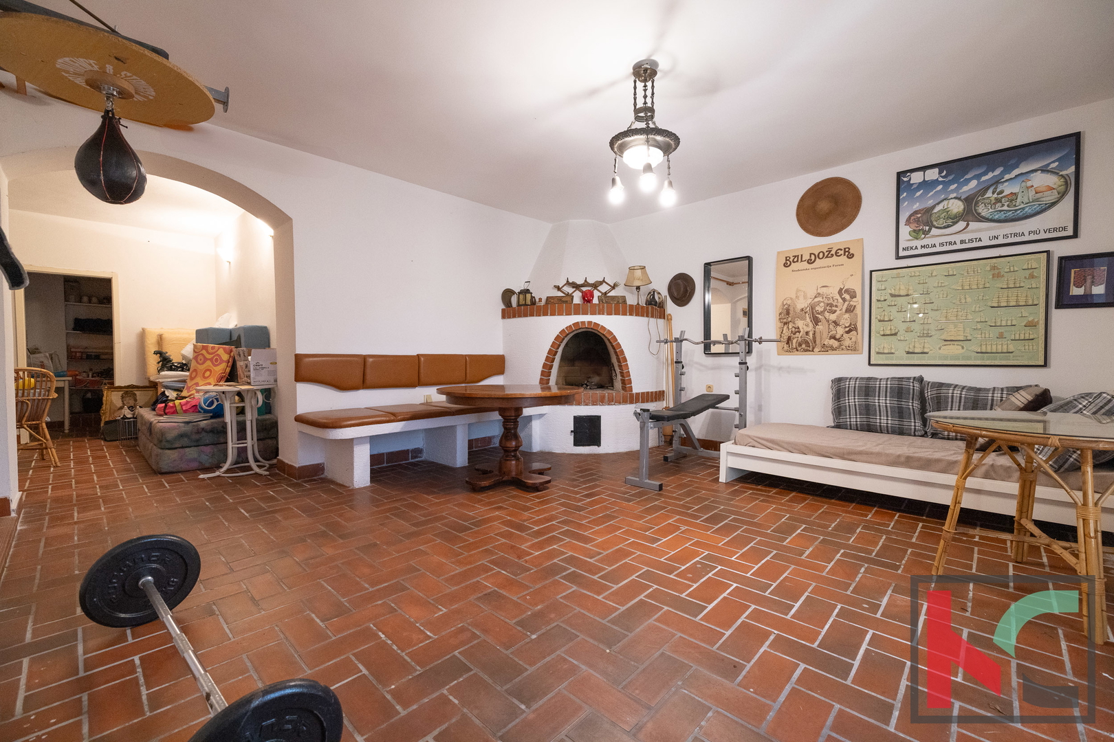- Prizemlje: autentična istarska konoba s kaminom na drva, 4 prostorije (jedna kotlovnica s cisternom za lož ulje), 2 sobe, utiliti, wc. Mogućnost pretvorbe u zasebnu stambenu jedinicu s vlastitim ulazom.
