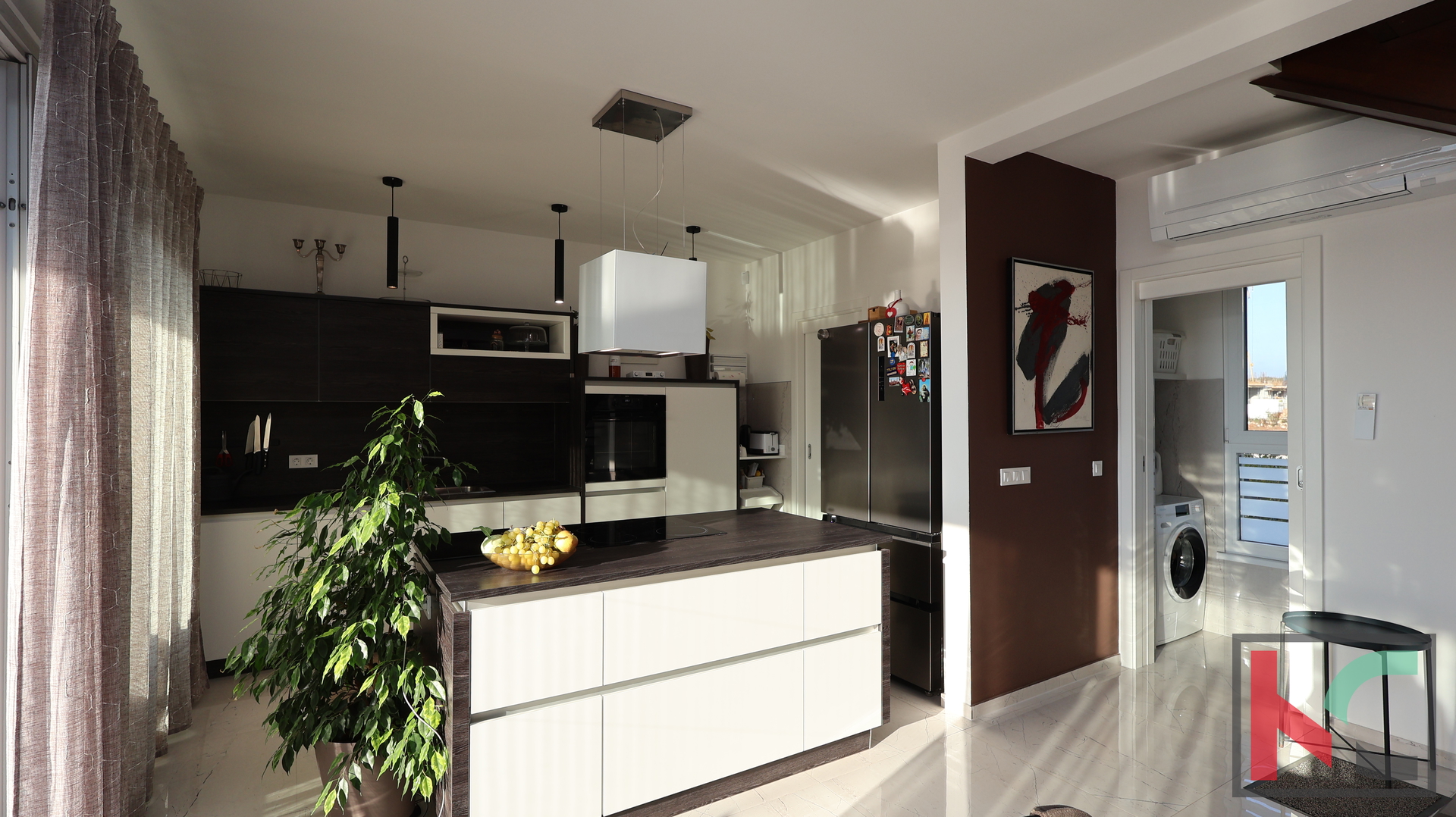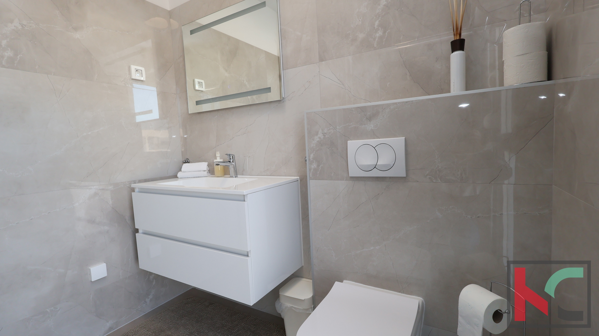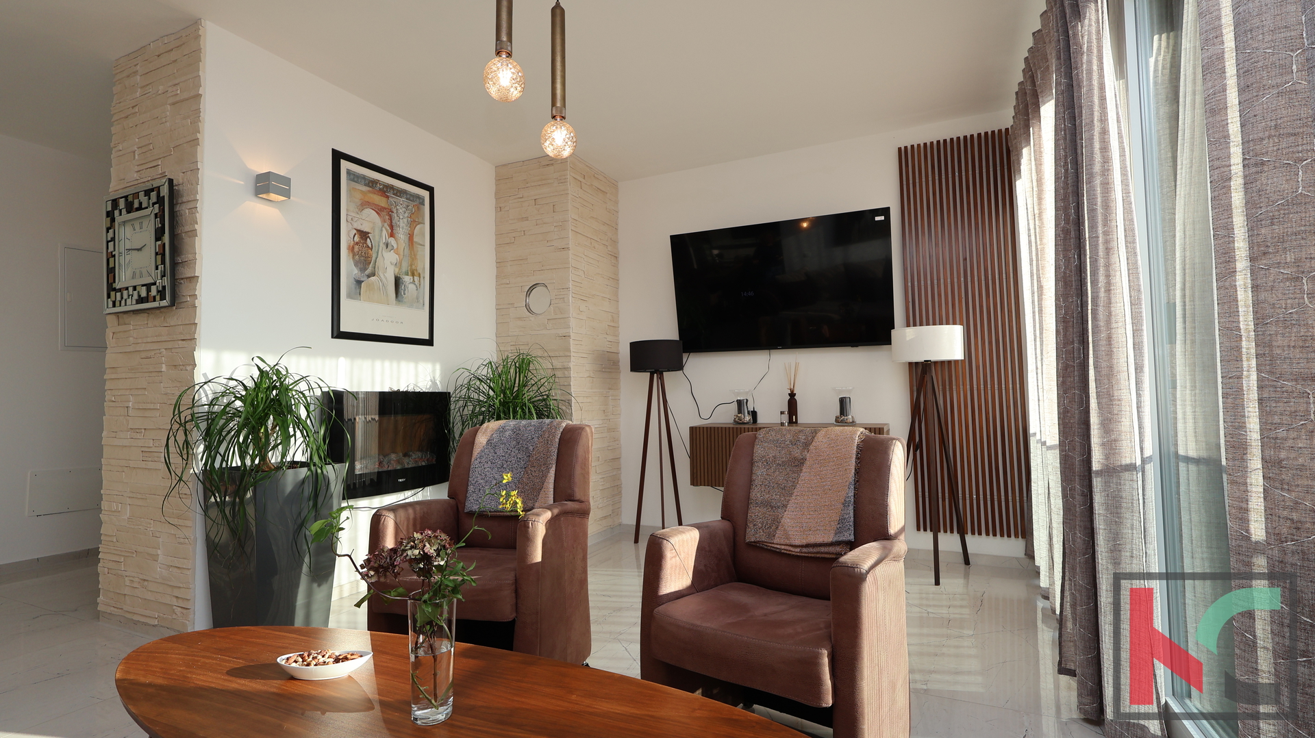 Vila se prodaje potpuno namještena, sa kompletnim alarmnim sustavom, portafonom, antracit PVC stolarijom, podnim grijanjem, ugrađenim klimatskim jedinicima za grijanje i hlađenje te opremljenom kuhinjom sa svim modernim kućanskim aparatima.