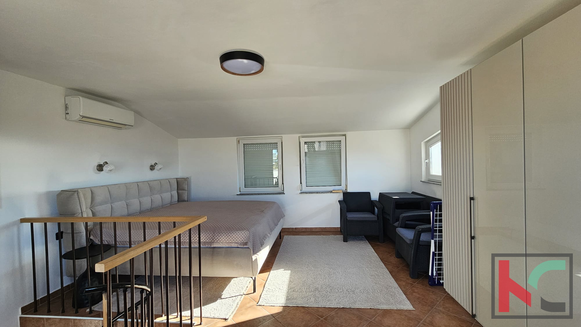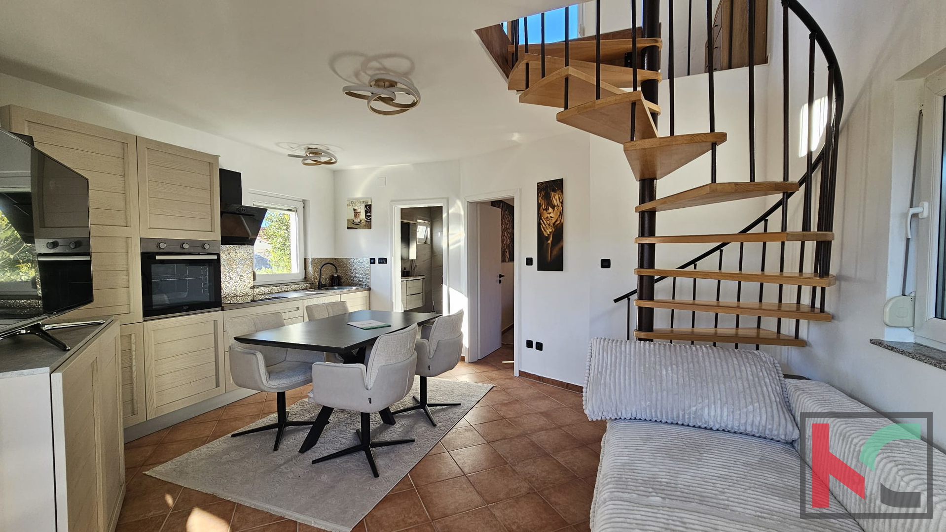 - Sastoji se od dvije stambene jedinice stoga je moguća za život ili odmor uz dodatni izvor prihoda. U prizemlju je smješten manji apartman od 29m2 koji se sastoji od kuhinje sa dnevnim boravkom, kupaonice i spavaće sobe. Vanjskim stepeništem prilazi se na prvi kat gdje se smjestio komforan, dvoetažni stan ukupne površine od 102m2. Sastoji se od kuhinje sa dnevnim boravkom, kupaonice, spavaće sobe, te u potkrovlju (stajaće visine) dodatne, prostrane spavaće sobe sa izlazom na terasu.