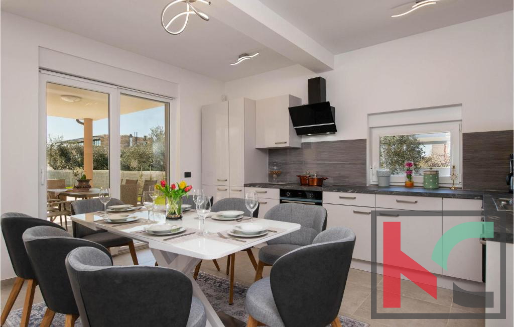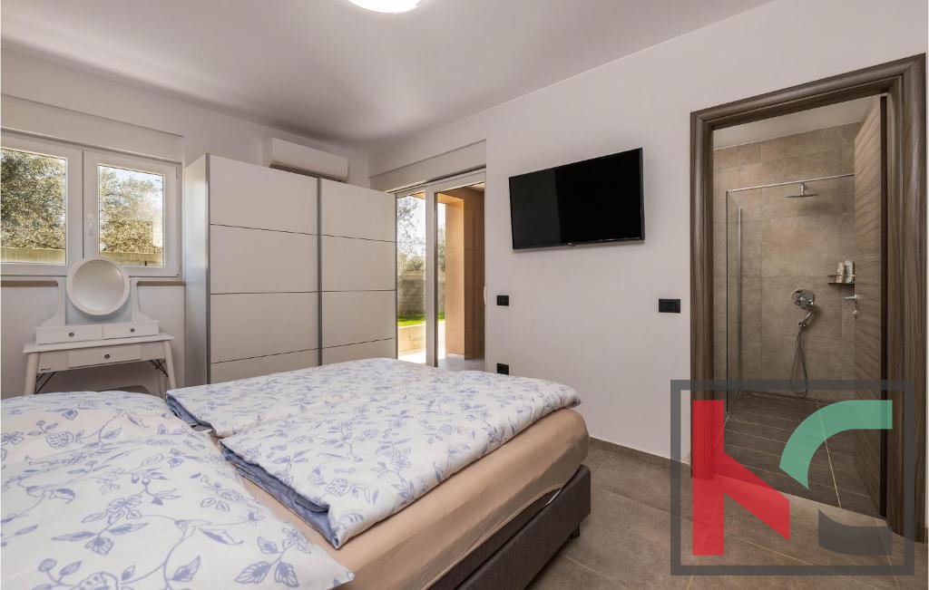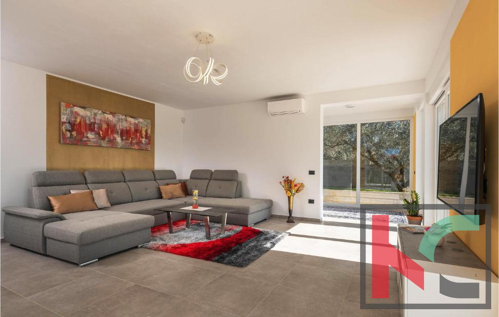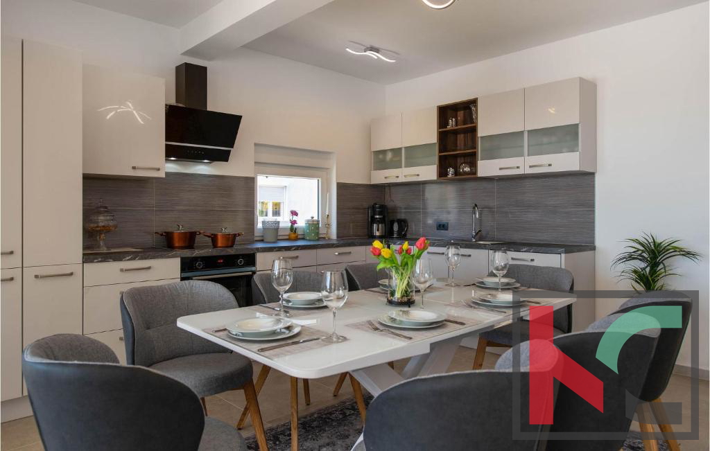 Vila nudi prostran, svijetao interijer s dnevnim boravkom povezanom s terasom i vrtom, modernu kuhinju s blagovaonicom te četiri spavaće sobe,