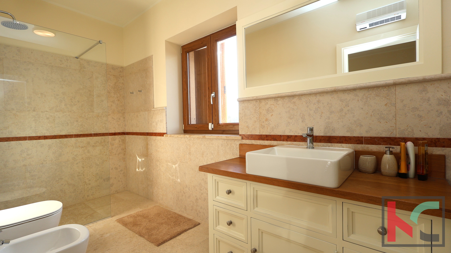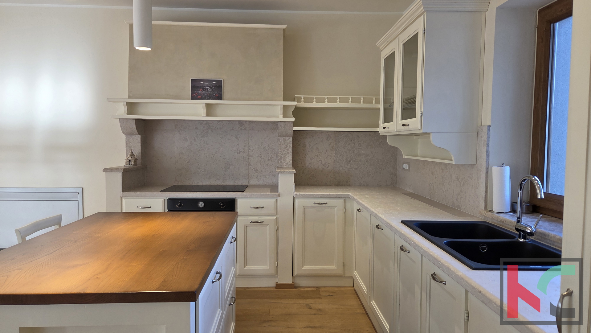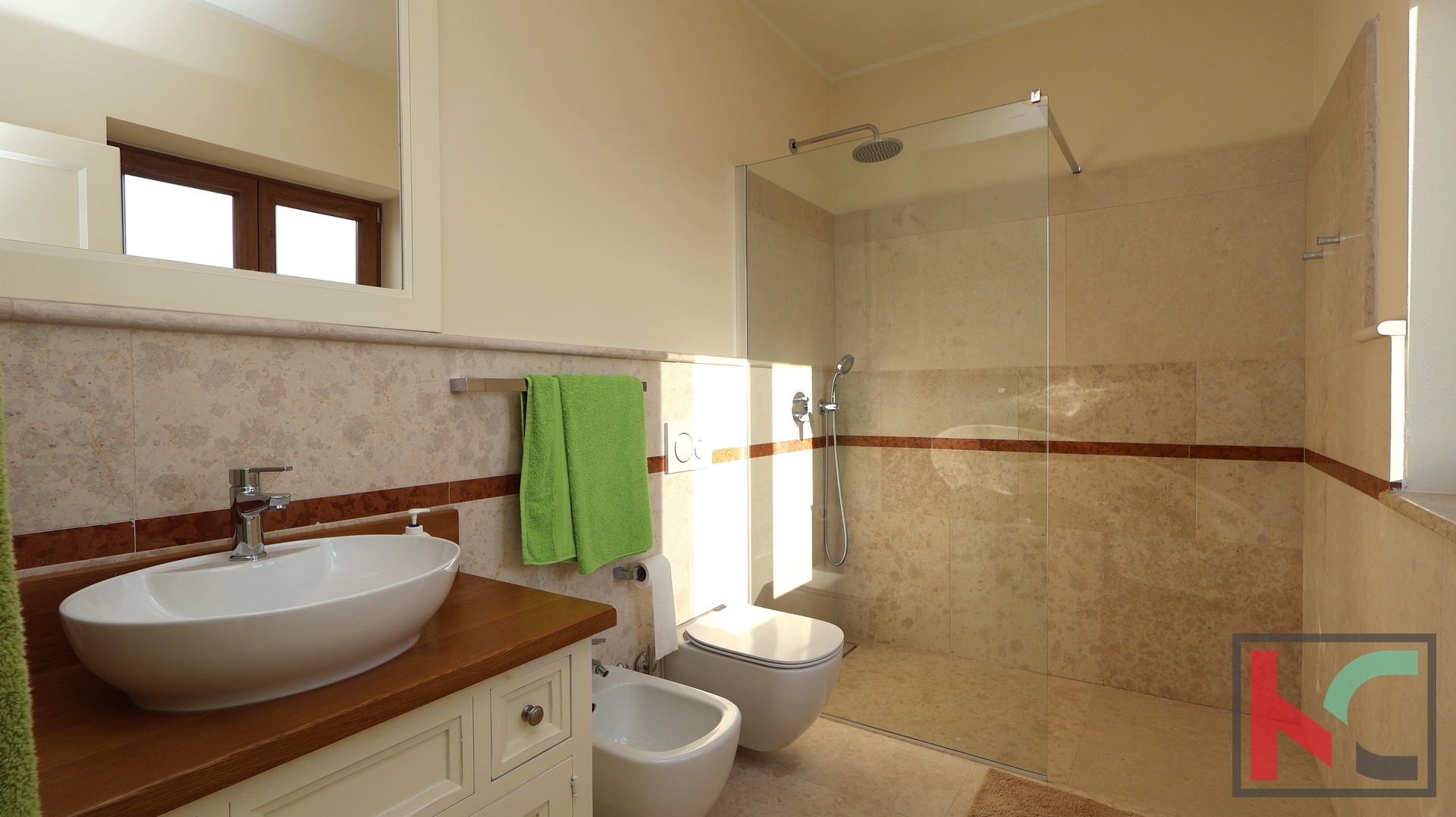 Posebno je važno naglasiti da je vlasnik ovu nekretninu gradio isključivo za vlastite potrebe, a ne kao investicijski projekt, pri čemu se nije štedjelo na materijalima ni opremi. Interijer krase drveni podovi, vrhunska talijanska keramika, detalji od autohtonog istarskog kamena te kvalitetan talijanski namještaj.