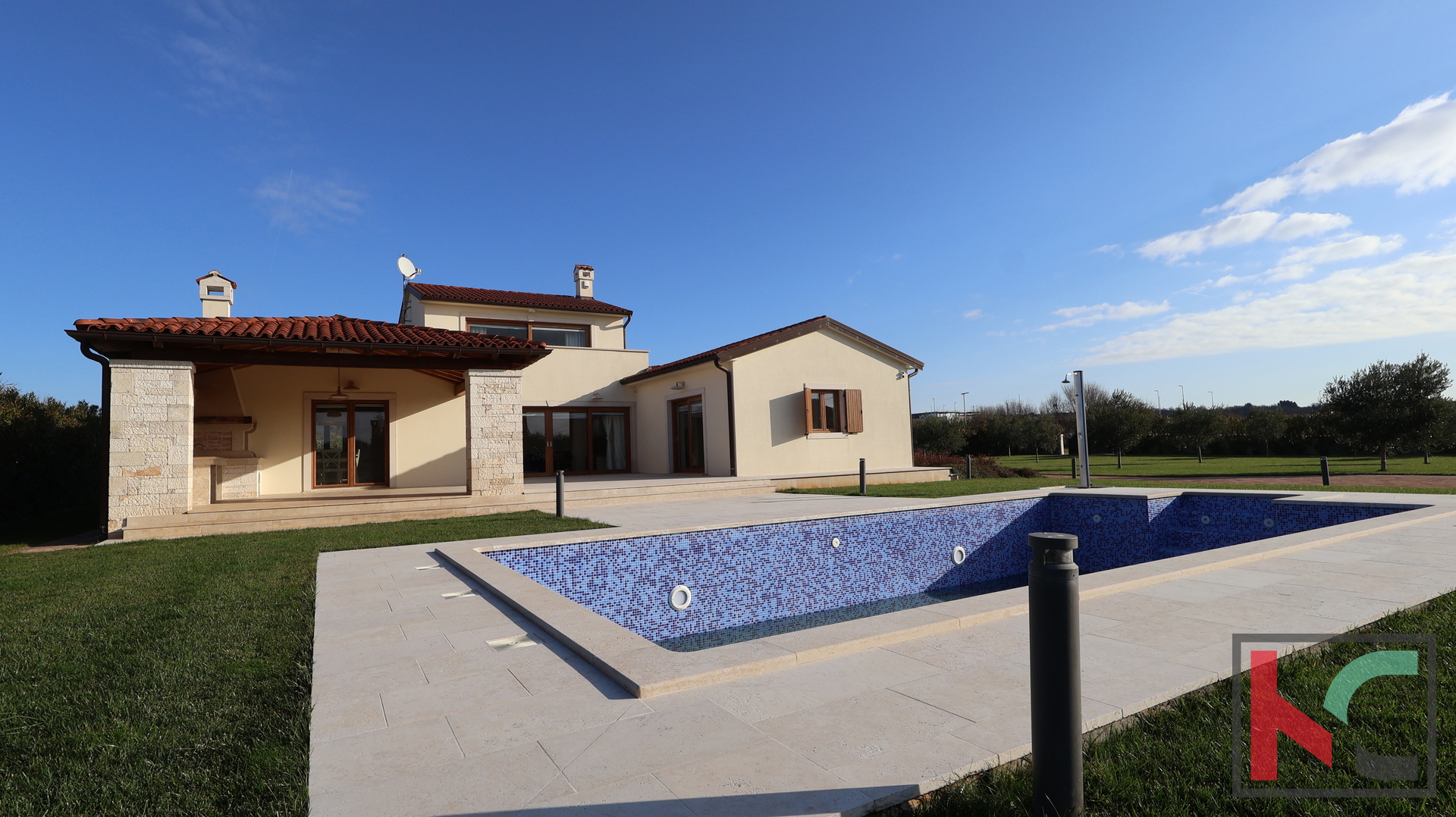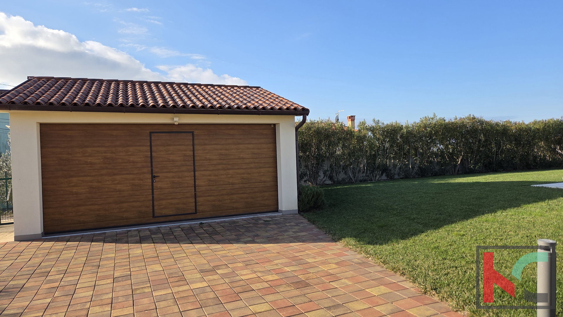 Uređena i pažljivo održavana okućnica nudi bazen, roštilj i brojne sadržaje za opuštanje i uživanje na otvorenom. Travnjak ima sustav automatskog navodnjavanja, a okućnica se kontinuirano uređuje i održava tijekom cijele godine, što jamči urednost i dugoročnu vrijednost nekretnine.