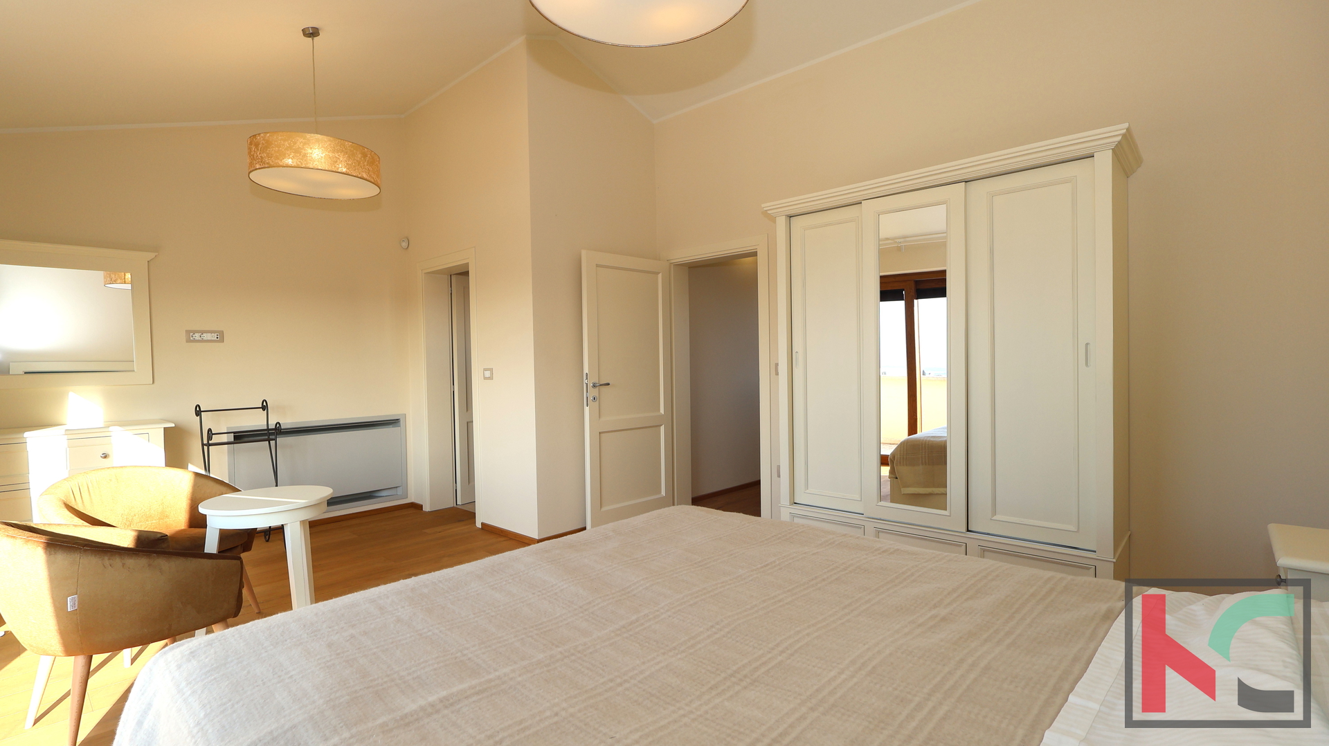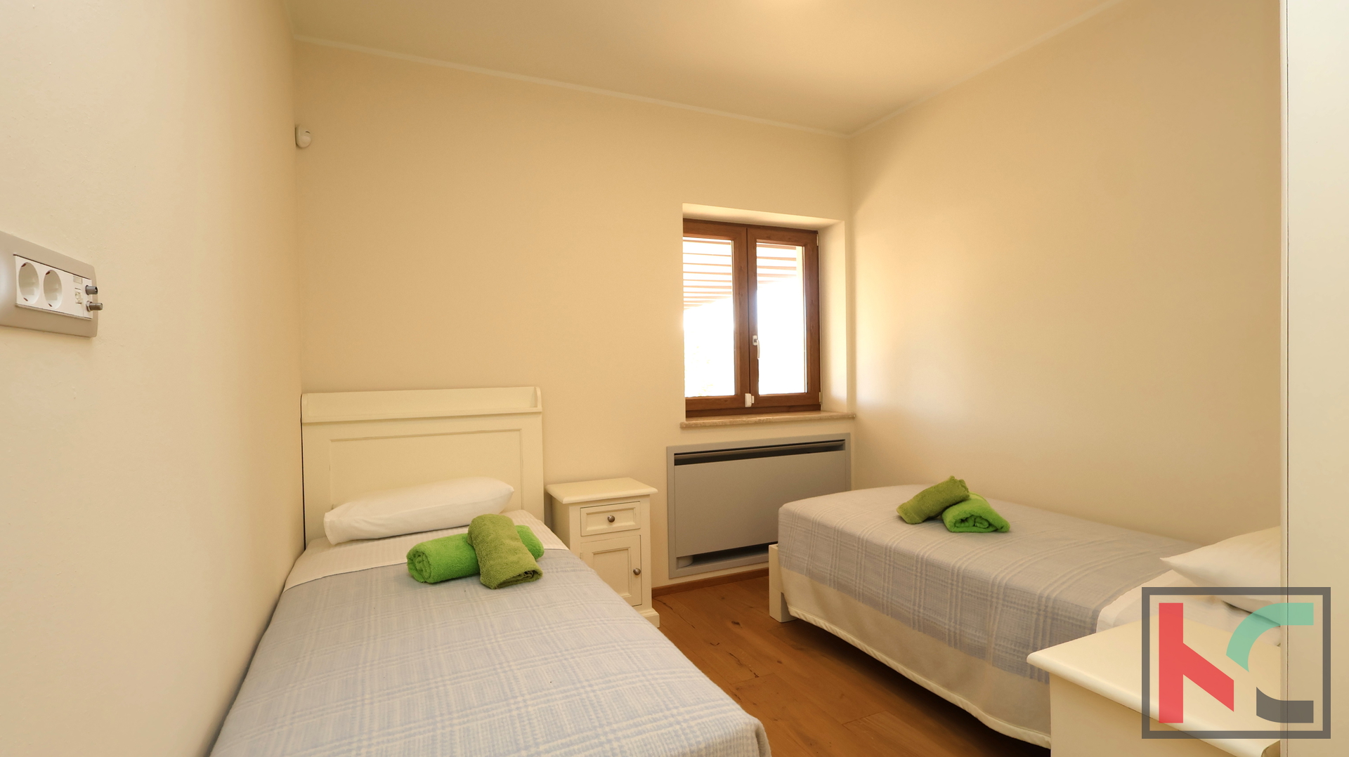 Grijanje je osigurano modernom dizalicom topline s termostatima u svakoj prostoriji, dok klima uređaji dodatno osiguravaju ugodnu temperaturu tijekom cijele godine.