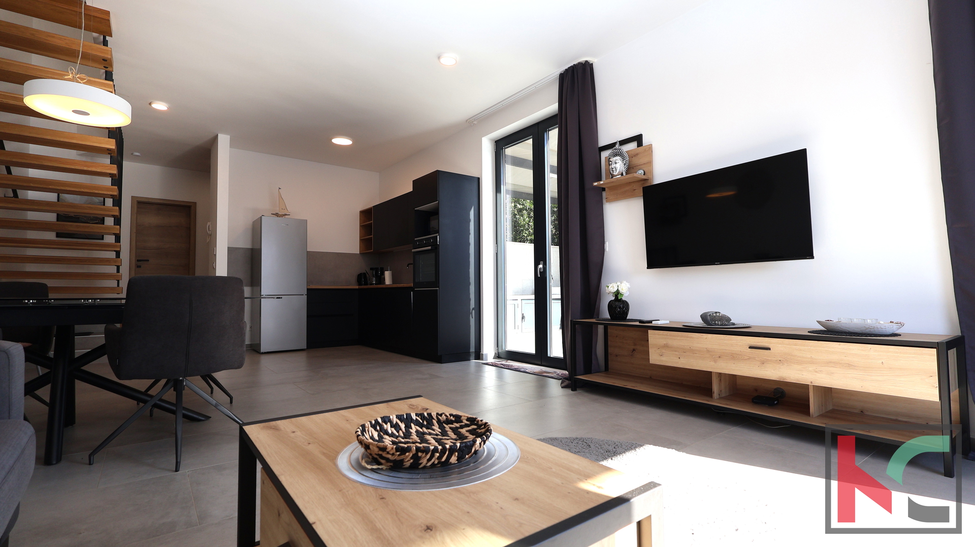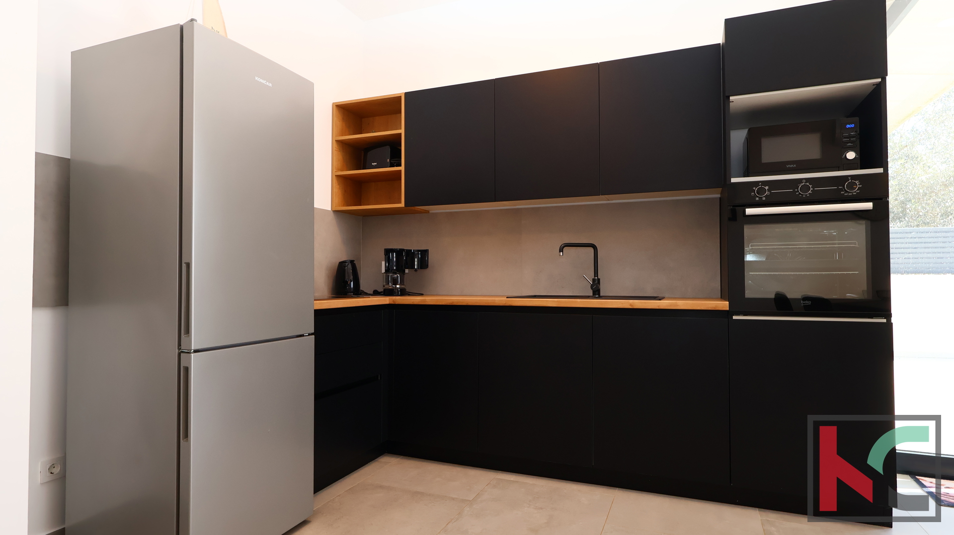 U prizemlju se nalaze dnevni boravak s izlazom na terasu i bazen, moderna kuhinja s blagovaonicom te funkcionalno uređena kupaonica.