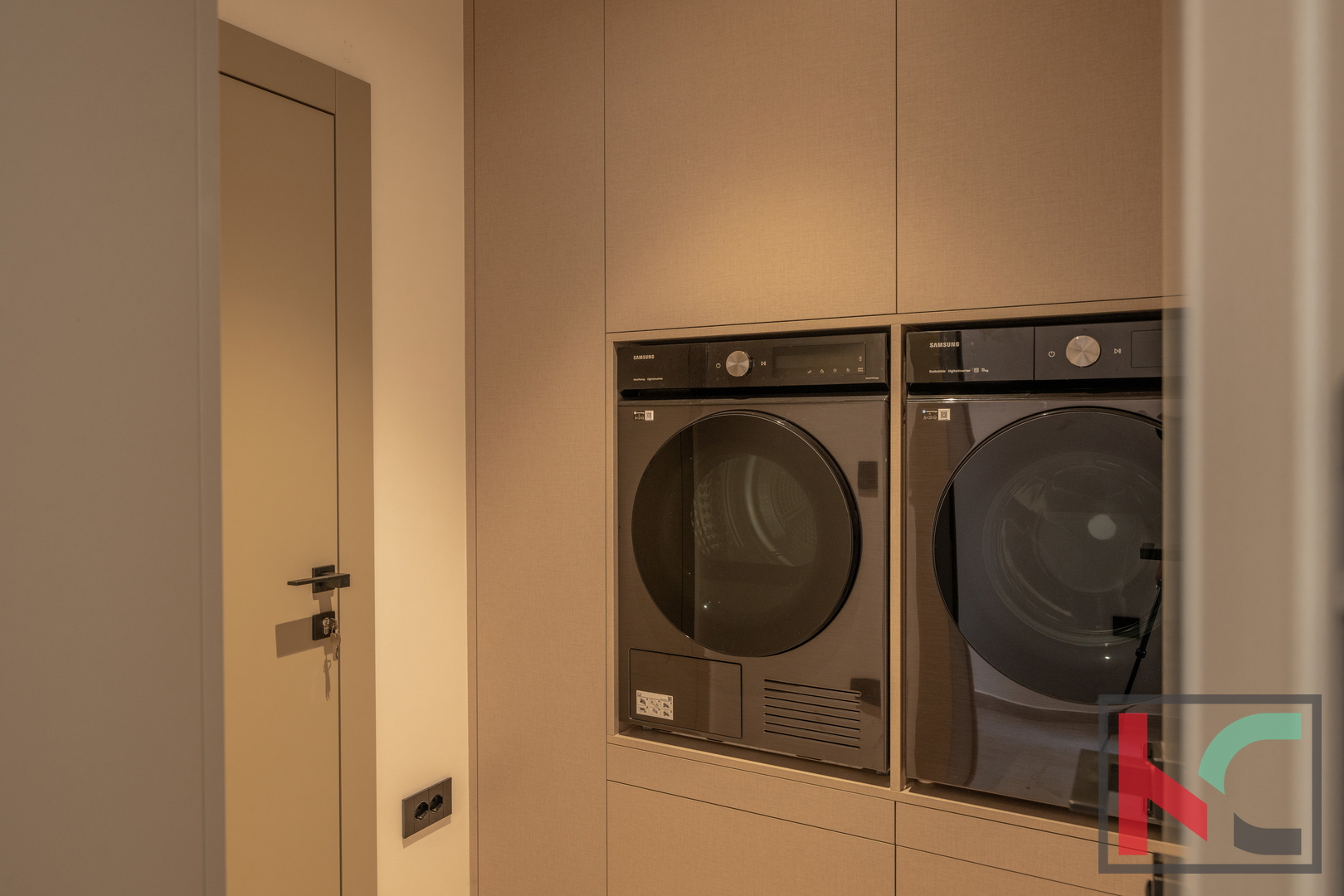 Vila je izgrađena 2024. godine, potpuno je namještena i odmah useljiva. Kompletna kuća ima podno (vodeno) grijanje na dizalicu topline. Opremljena je sustavom video nadzora, sigurnosnim rješenjima, modernim kućanskim aparatima i grijanim bazenom, čime se dodatno potvrđuje njezin luksuzni karakter.