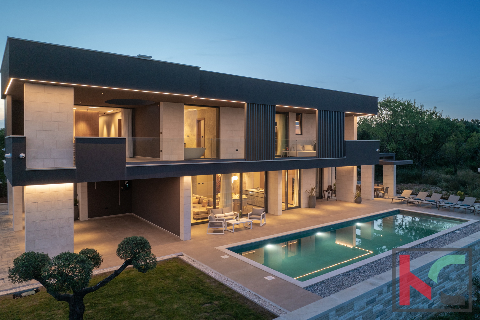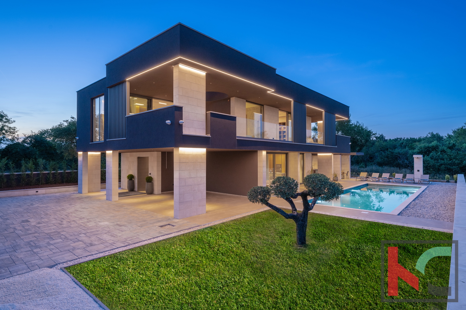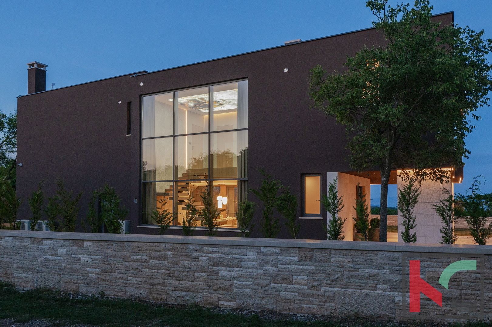 Na prostranoj parceli od 892 m2 smjestila se ova impresivna novogradnja koja utjelovljuje suvremenu arhitekturu, profinjeni dizajn i apsolutnu privatnost. S ukupno 401 m2 izgrađene površine – od čega 208 m2 čini elegantno uređen interijer, 133 m2 prostrane terase te 60 m2 grijani bazen.