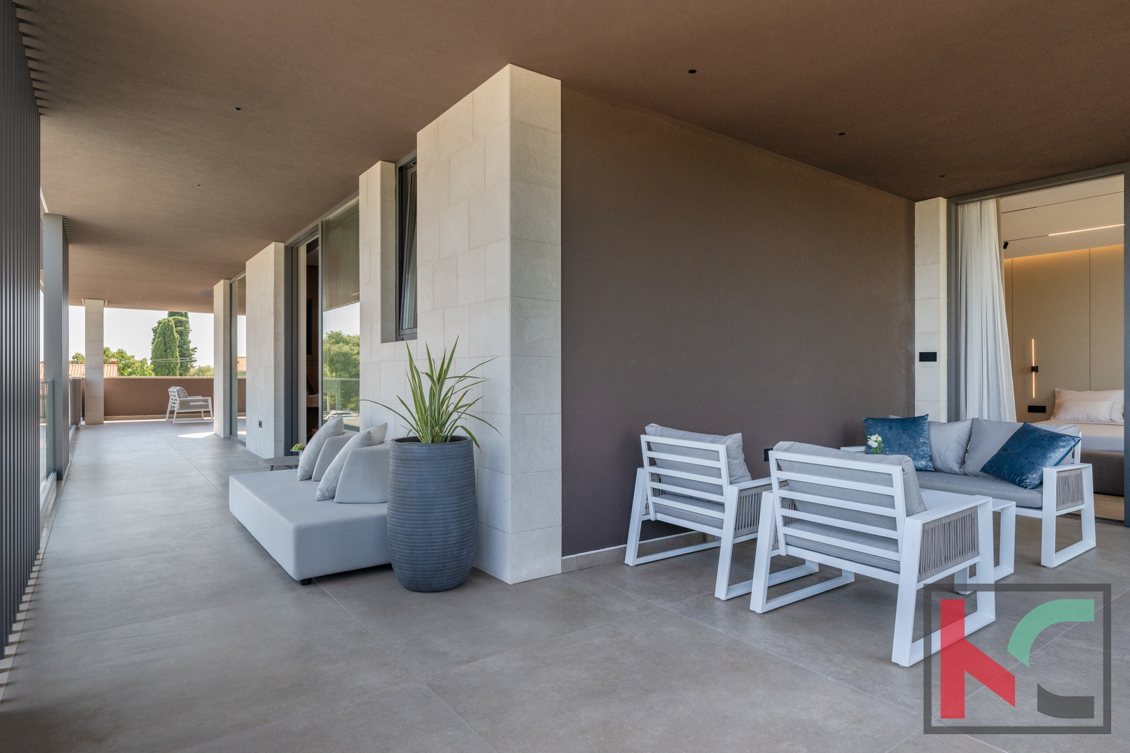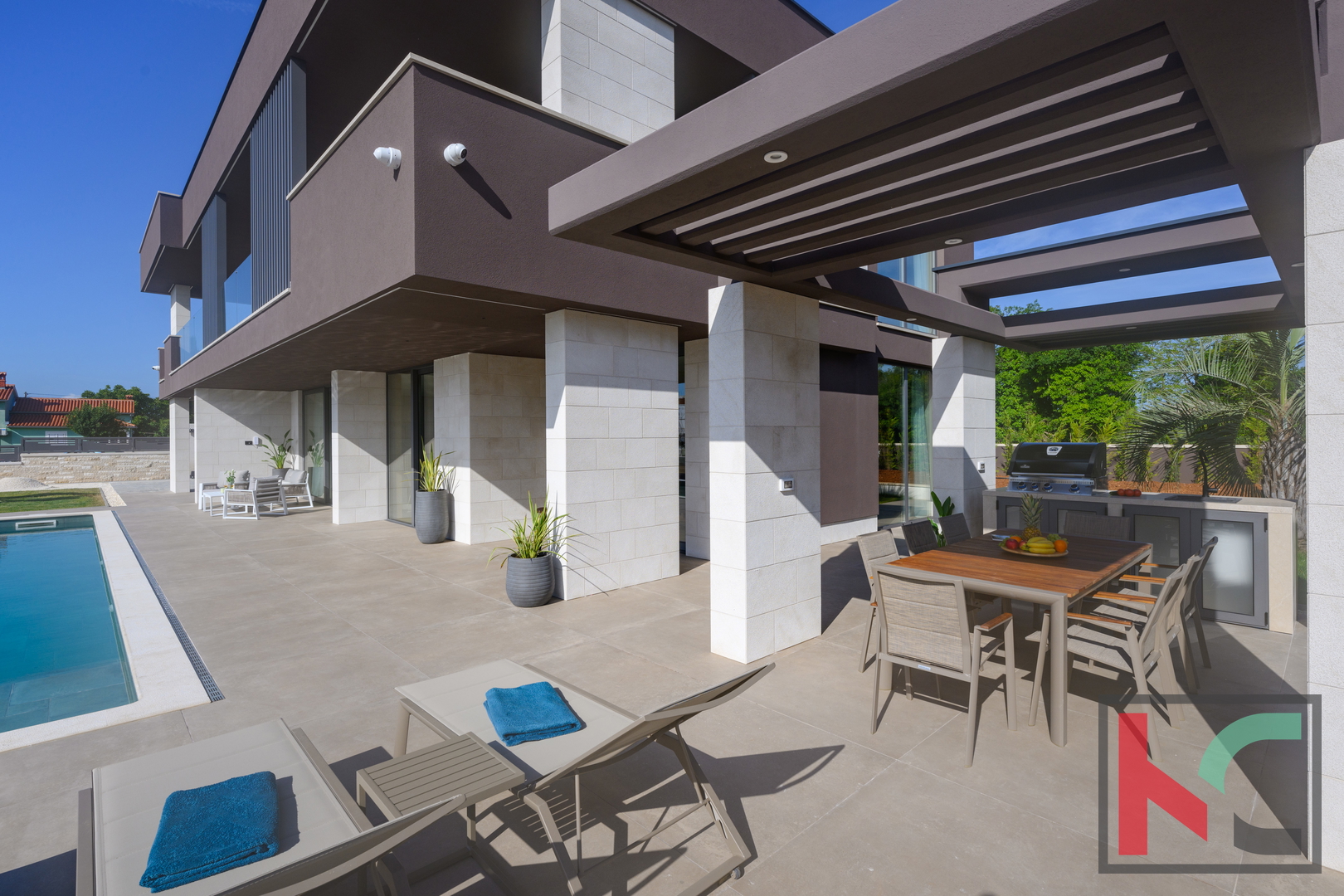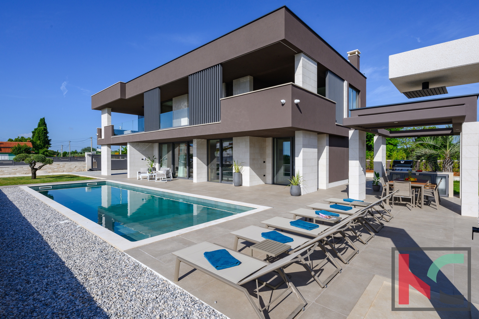 Na prostranoj parceli od 892 m2 smjestila se ova impresivna novogradnja koja utjelovljuje suvremenu arhitekturu, profinjeni dizajn i apsolutnu privatnost. S ukupno 401 m2 izgrađene površine – od čega 208 m2 čini elegantno uređen interijer, 133 m2 prostrane terase te 60 m2 grijani bazen.