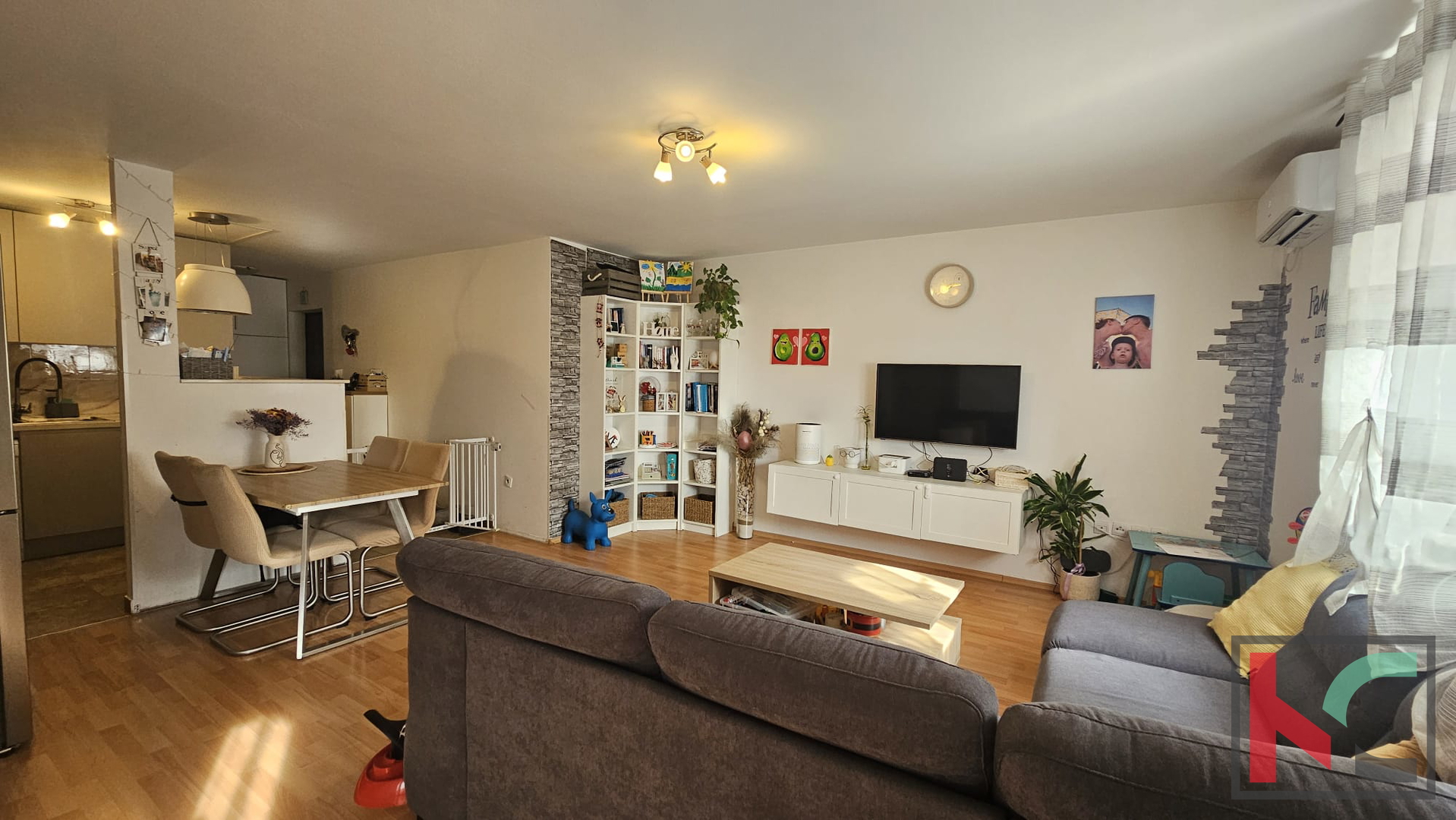 Tlocrt stana je vrlo funkcionalan. Sastoji senod ulaznog predsoblja, kupaonice, kuhinje sa dnevnim boravkom i blagovaonom, dvije spavaće sobe te lođa koja pruža dodatni prostor za opuštanje na otvorenom. Grijanje je riješeno putem klimatske jedinice što doprinosi ugodnoj temperaturi tijekom cijele godine. Predmetna nekretnina se prodaje uglavnom namještena što omogućava useljenje bez veći dodatnih ulaganja. Parkirno mjesto je u vlasništvu.