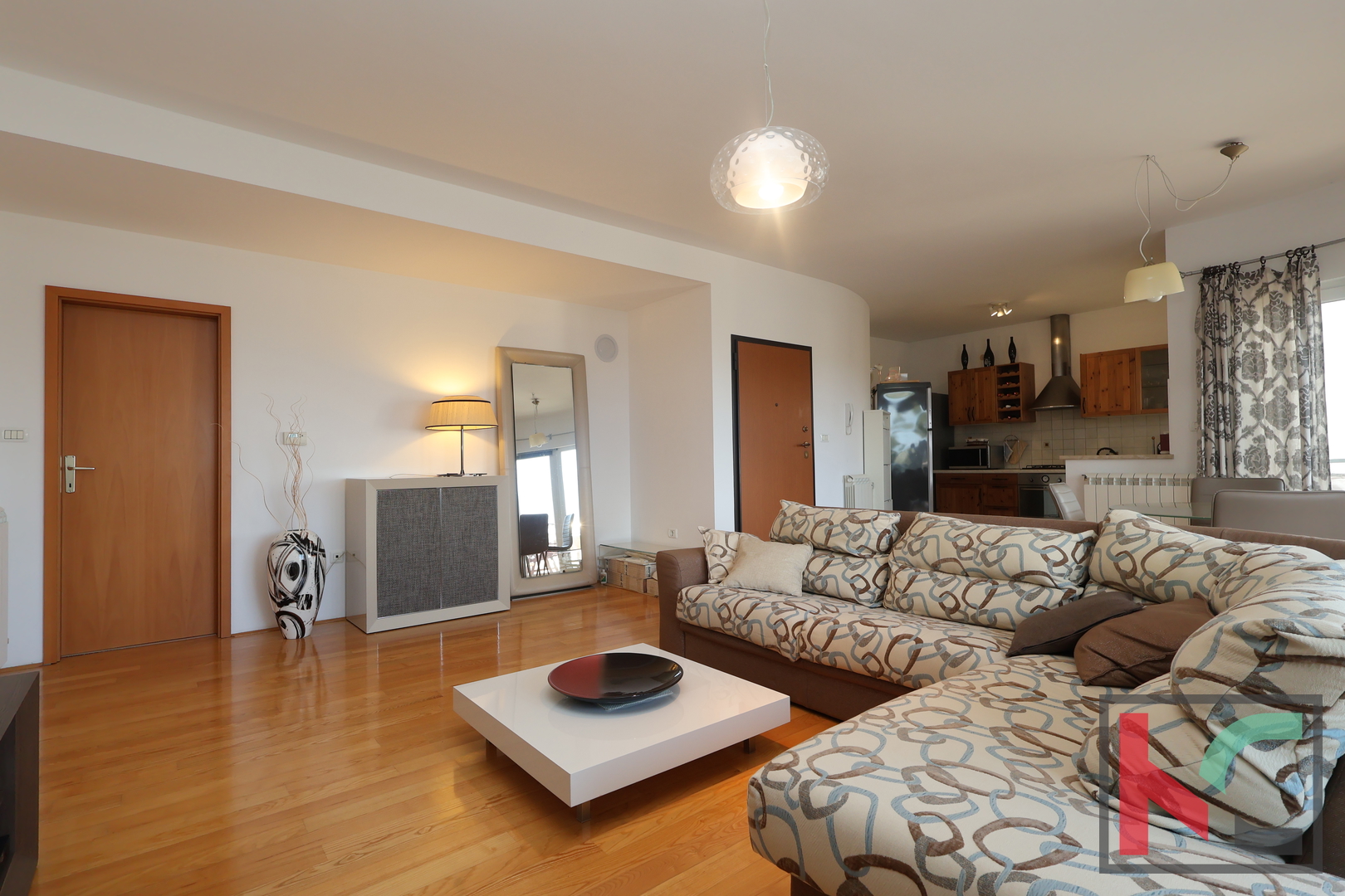 Stan se sastoji od prostranog dnevnog dijela otvorenog koncepta koji objedinjuje kuhinju, blagovaonicu i dnevni boravak.Odvojeno predsoblje/hodnik, koji potpuno odvaja noćni dio sa dvije komforne spavaće sobe , kupatilo sa kadom i odvojena ostava.
