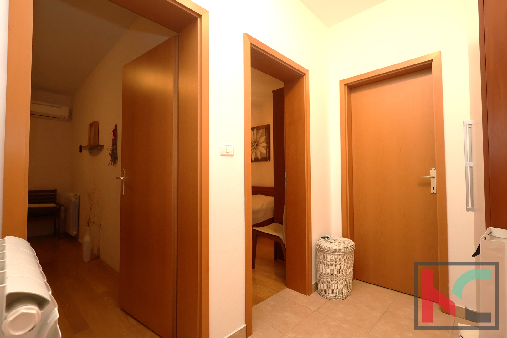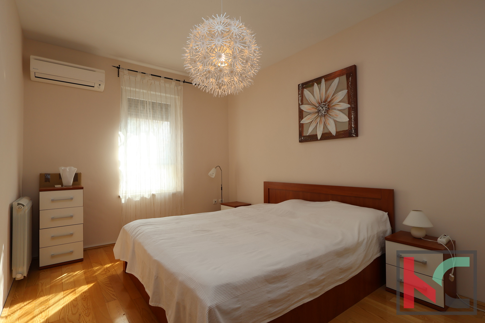 Stan je opremljen kvalitetnim parketom i keramikom, a za ugodnu temperaturu tijekom cijele godine brinu Daikin klima uređaji postavljeni u svakoj prostoriji te centralno plinsko grijanje. Dodatnu vrijednost nekretnini daje velika podrumska prostorija te osigurana parkirna mjesta.