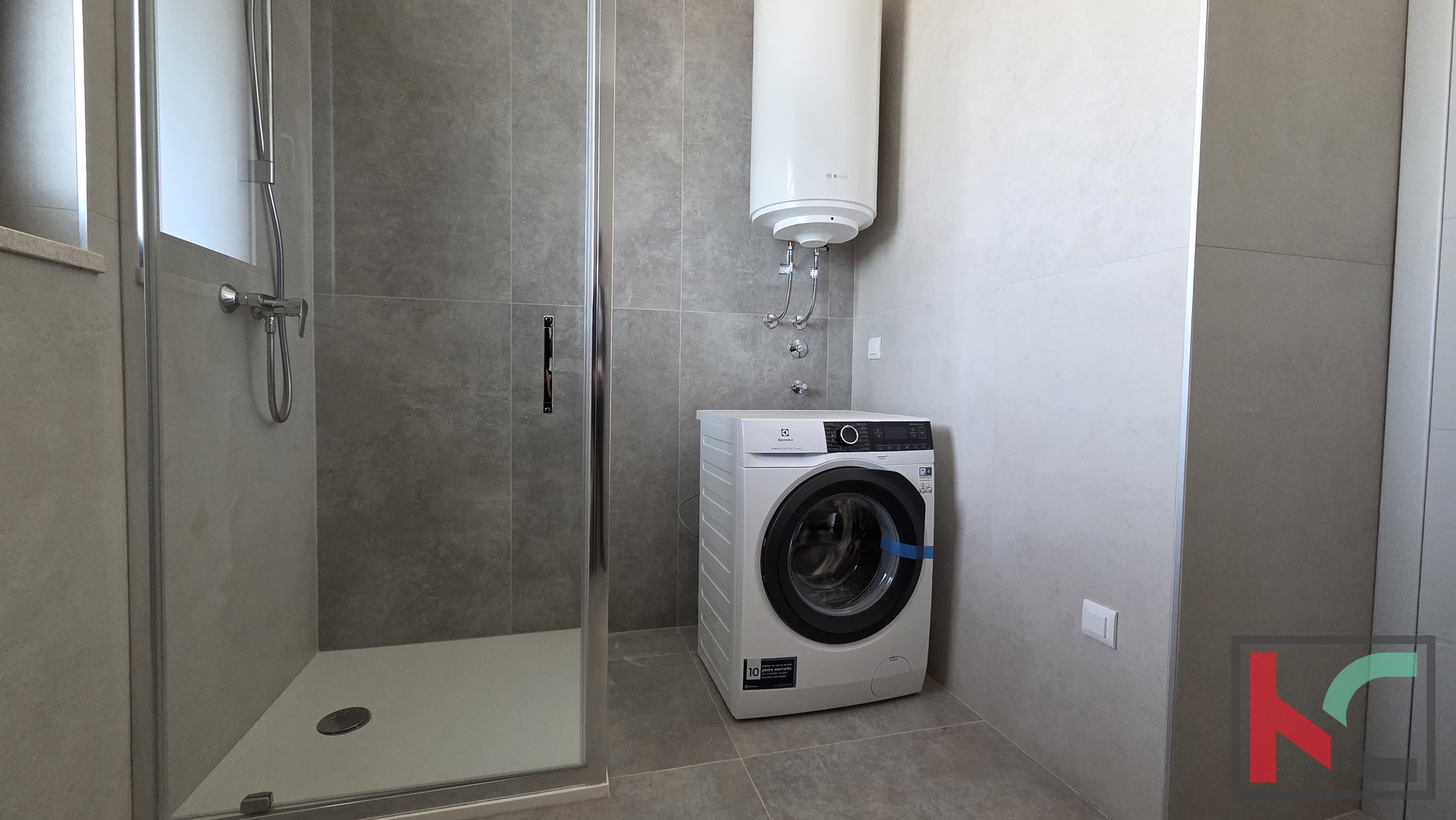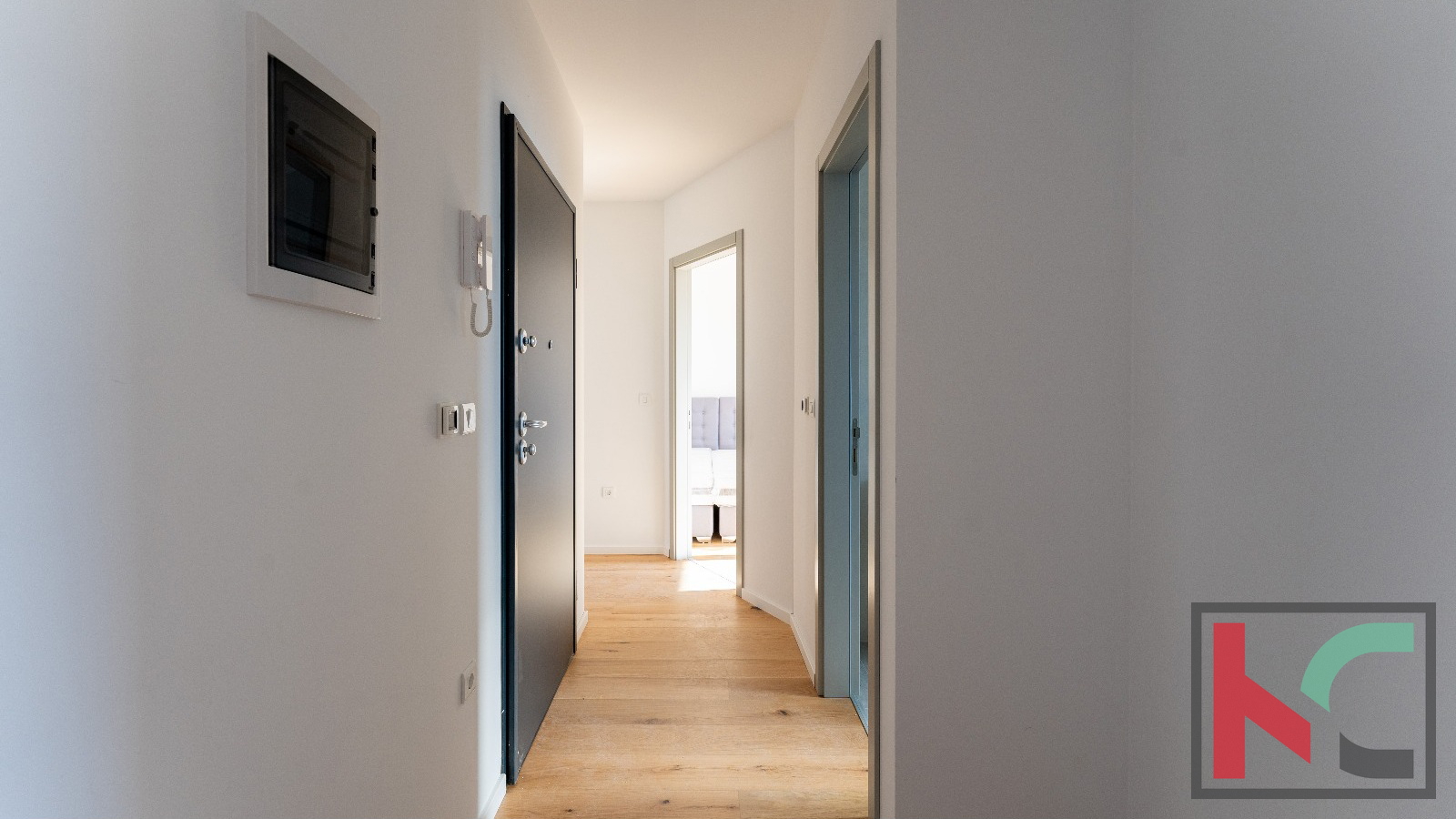 Ova elegantna nekretnina nudi savršenu kombinaciju suvremenog dizajna i funkcionalnog rasporeda, u što ubrajamo: ulazni hodni s garderobni dijelom, prostrani dnevni boravak otvorenog koncepta s kuhinjom i blagovaonicom, s izlazom na dvije natkrivene terase, jedna na zapadnoj,druga na istočnoj strani što osigurava cjelodnevnu svjetlost, tri spavaće sobe, od kojih glavna ima izlaz na terasu, dvije uređene kupaonice s walk-in tuševima. Stambeni prostor je neto površine od 113,14m2 dok ostatak navedene kvadrature ćine još 2 parkirna mjesta i spremište u prizemlju zgrade.