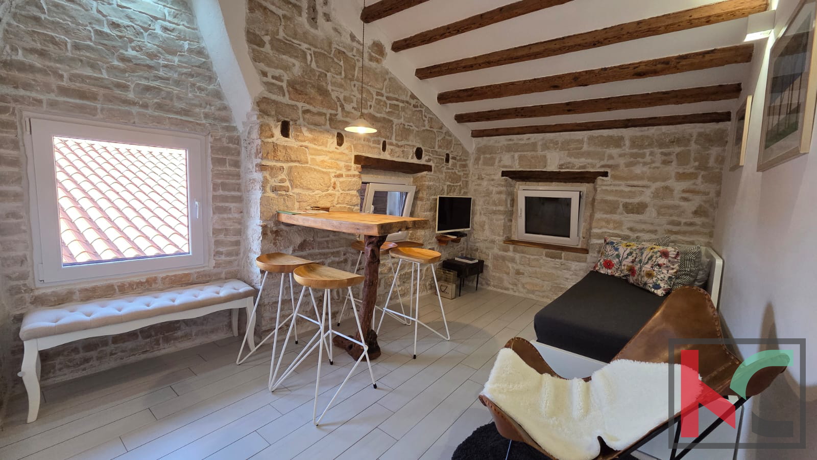 In vendita un immobile unico nel cuore del centro storico di Rovigno, situato al 3° piano di un edificio tradizionale. Nonostante la posizione nel centro storico, l’appartamento è asciutto, ordinato e molto ben mantenuto, mentre l’edificio dispone di una scala normale e spaziosa, senza ascensore. L’immobile è composto da due unità abitative separate e classificate, ciascuna con ingresso indipendente, il che consente una combinazione ideale tra uso personale e prosecuzione di un’attività consolidata di affitto turistico.