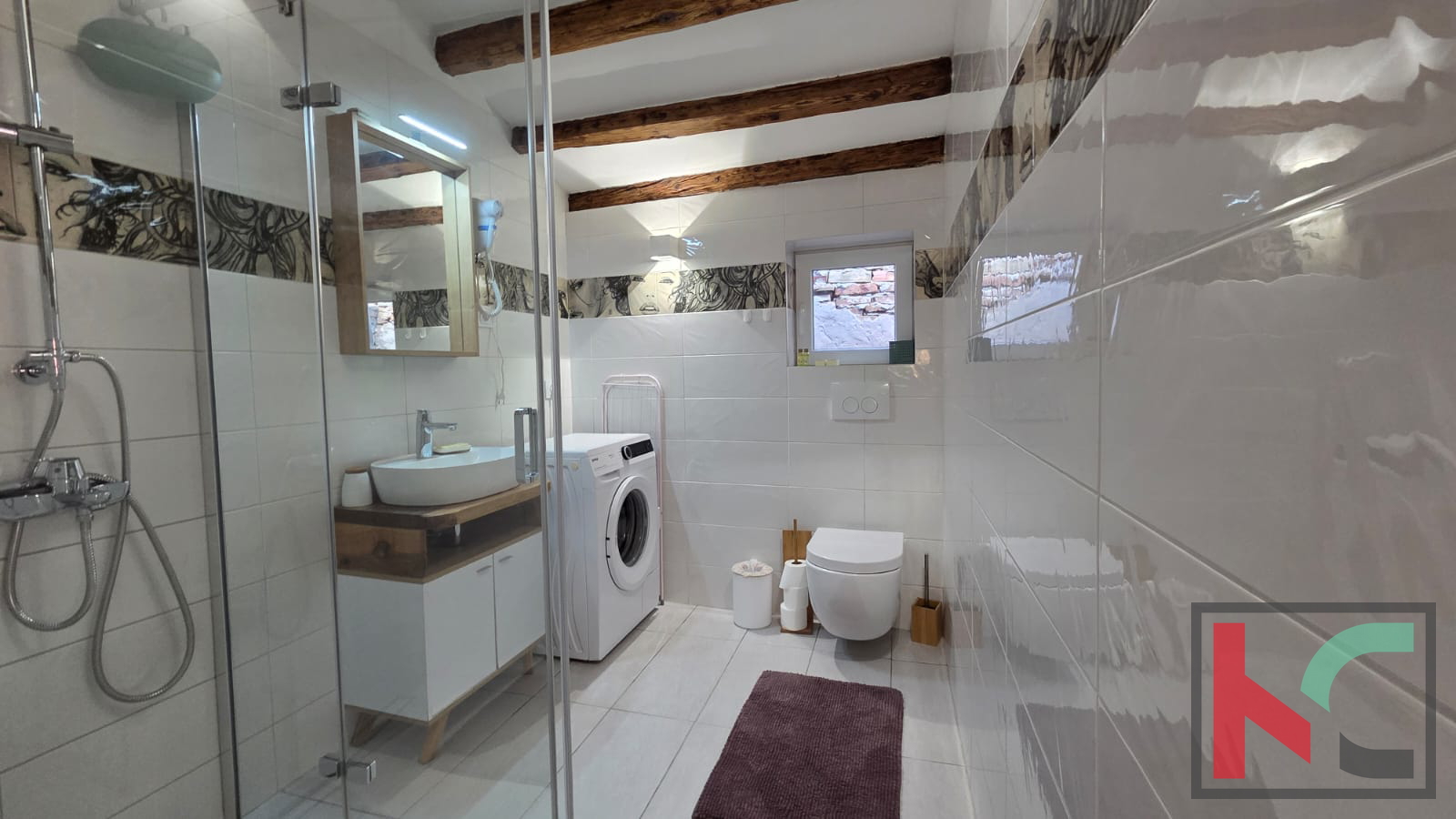 L’appartamento è stato completamente ristrutturato nel 2018, con posa di nuovi pavimenti e rivestimenti in ceramica, sostituzione di tutti gli impianti elettrici e idraulici, restauri delle pareti, installazione di nuove finestre e porte, nonché climatizzatori per riscaldamento e raffrescamento. È stato installato un potenziatore di pressione dell’acqua per entrambe le unità e un filtro Polar per la rimozione del calcare, un grande vantaggio data la durezza dell’acqua a Rovigno; inoltre è stata garantita la protezione di tutte le tubature e degli impianti idraulici. Gli appartamenti vengono venduti completamente arredati, inclusi tutti gli elettrodomestici, mobili, accessori e biciclette.