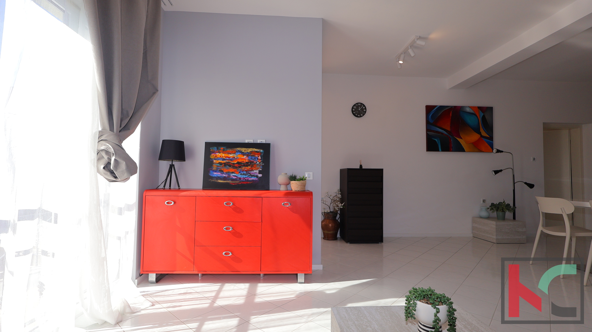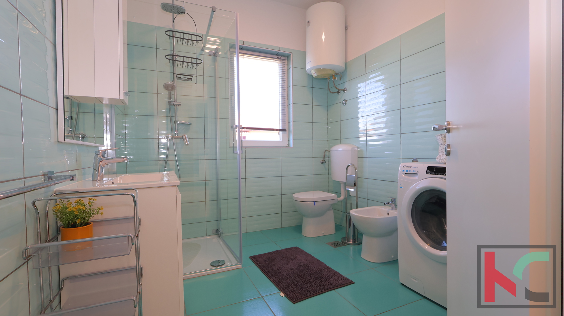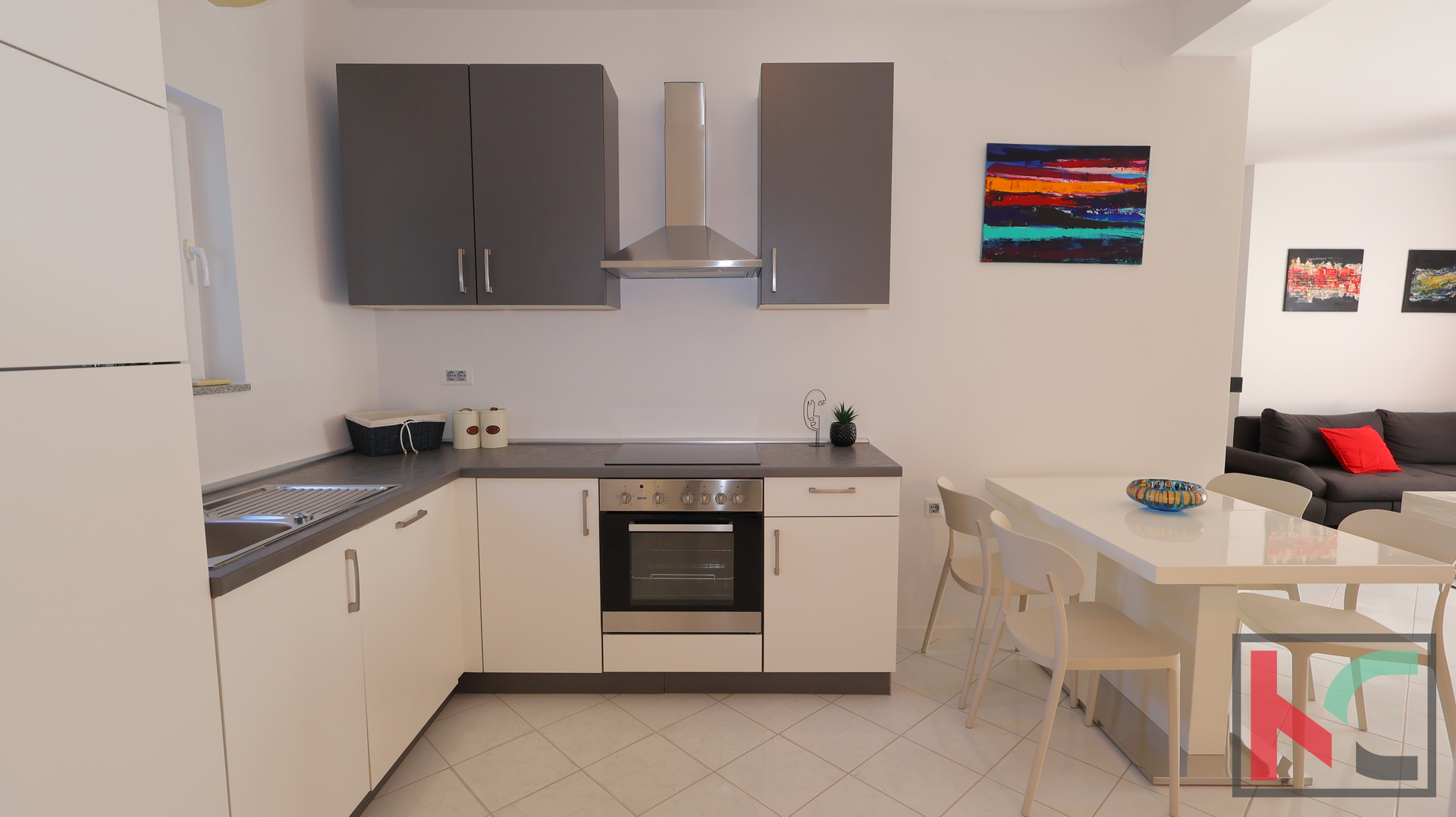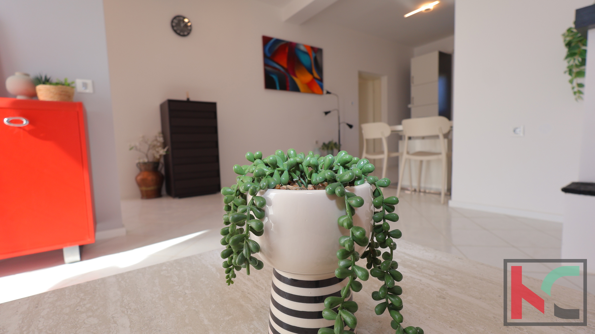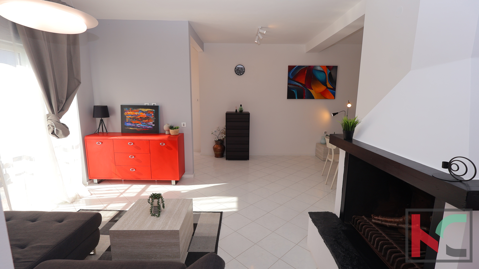 Prodajamo velik sončen stan v mirnem delu Ližnjana. Skupaj ima stanovanjska površina 78,90 m2 in se nahaja v prvem nadstropju manjše stanovanjske stavbe. Sestavljen je iz vhodnega hodnika, velike dnevne sobe s kaminom, kuhinje, jedilnice, dveh spalnic, kopalnice in terase. Stanovanju pripada tudi eno parkirno mesto.