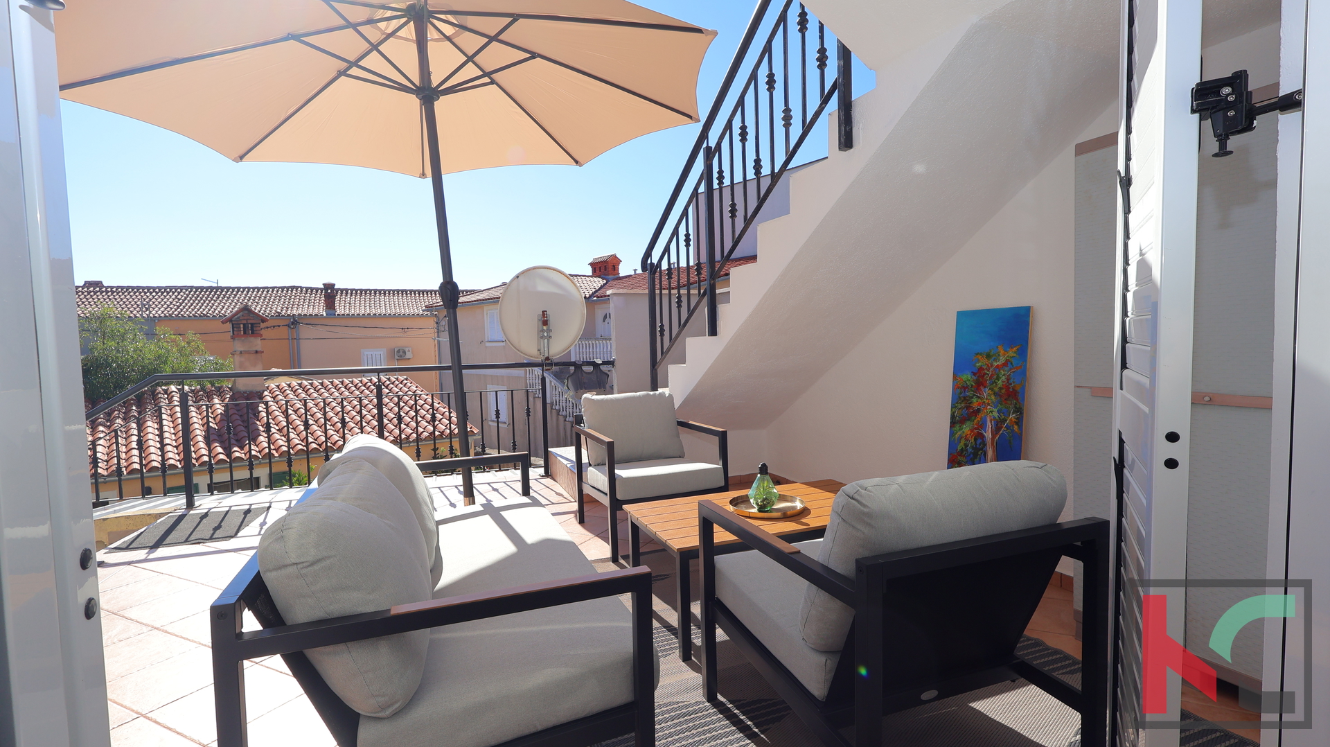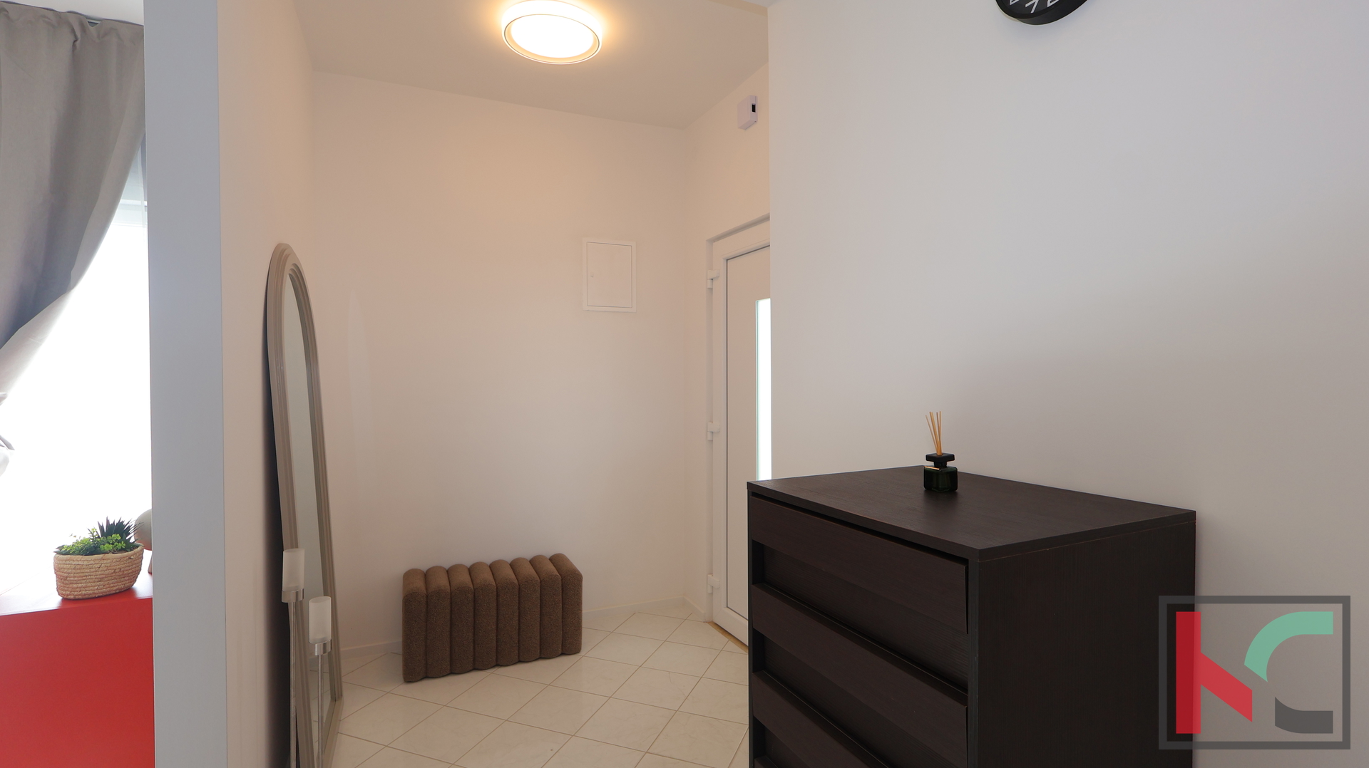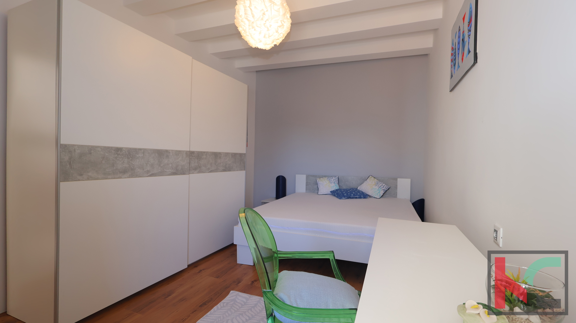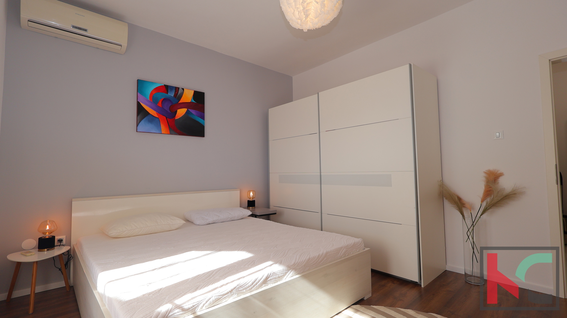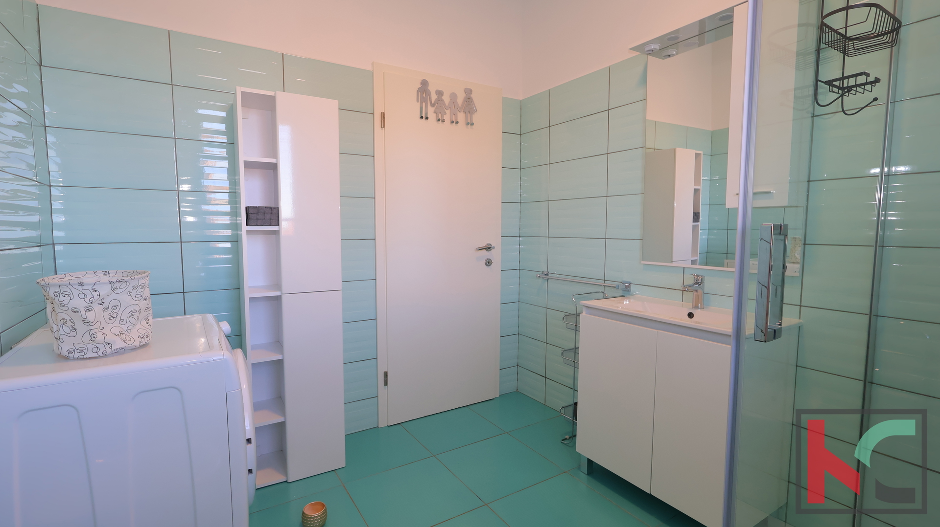 Prodajamo velik sončen stan v mirnem delu Ližnjana. Skupaj ima stanovanjska površina 78,90 m2 in se nahaja v prvem nadstropju manjše stanovanjske stavbe. Sestavljen je iz vhodnega hodnika, velike dnevne sobe s kaminom, kuhinje, jedilnice, dveh spalnic, kopalnice in terase. Stanovanju pripada tudi eno parkirno mesto.