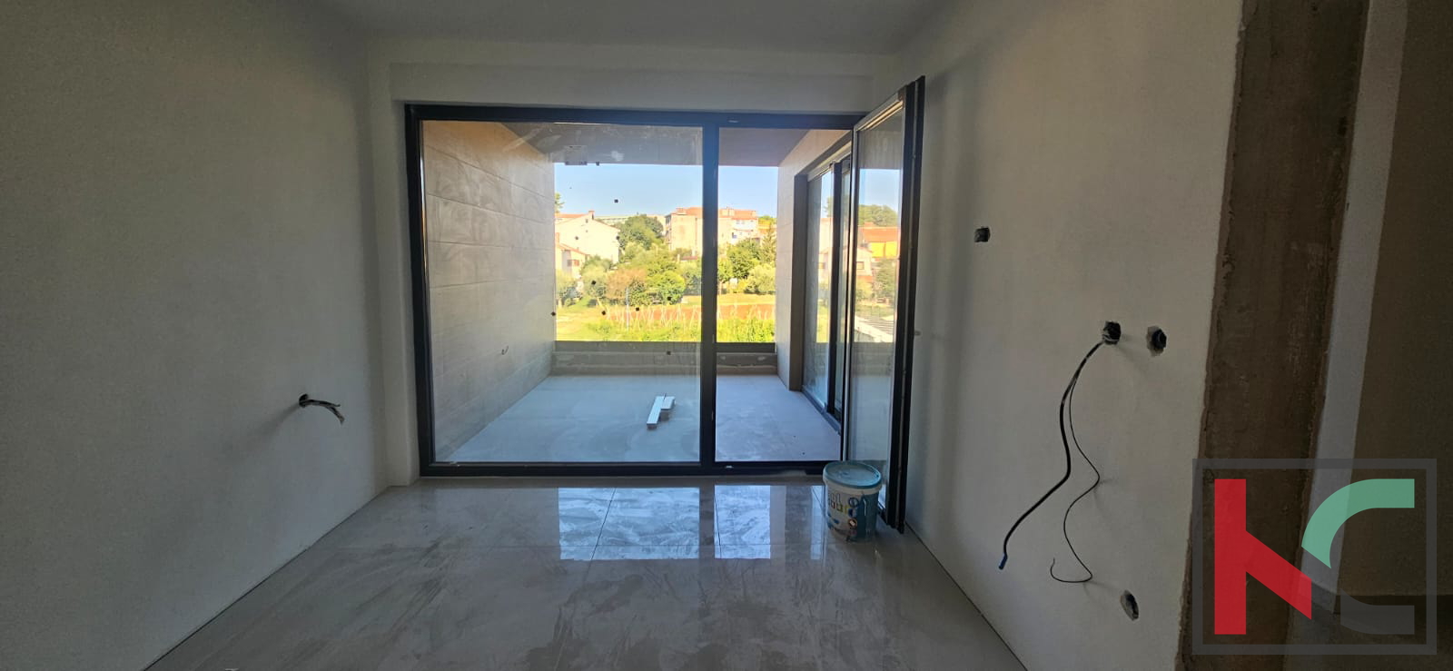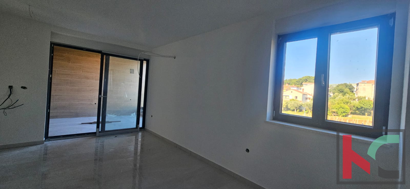 Stanovanje je opremljeno s talnim ogrevanjem, invertersko klimatsko napravo za ogrevanje in hlajenje, PVC troslojno stavbno pohištvo v antracit barvi ter 10 cm debelo demit fasado.