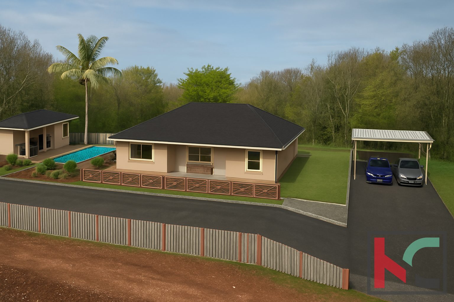 Prodajamo zelo atraktivno zemljišče v Občini Barban blizu vasi in sprehajalnih poti. Skupna površina znaša 3016 m2, od tega je 812 m2 namenjenih za gradnjo, 2204 m2 pa za kmetijsko rabo. Priključki za elektriko in vodo niso plačani, vendar so izvedeni do glavnega priključka, zato je potreben le priključek. Obstaja tudi arhitekturni projekt za dve različici gradnje počitniške hiše. Vloga za izdajo gradbenega dovoljenja za večjo hišo je bila oddana, po potrebi pa je mogoče urediti tudi spremembo dovoljenja. Predviden je tudi bazen ter dodatna samostojna stavba.