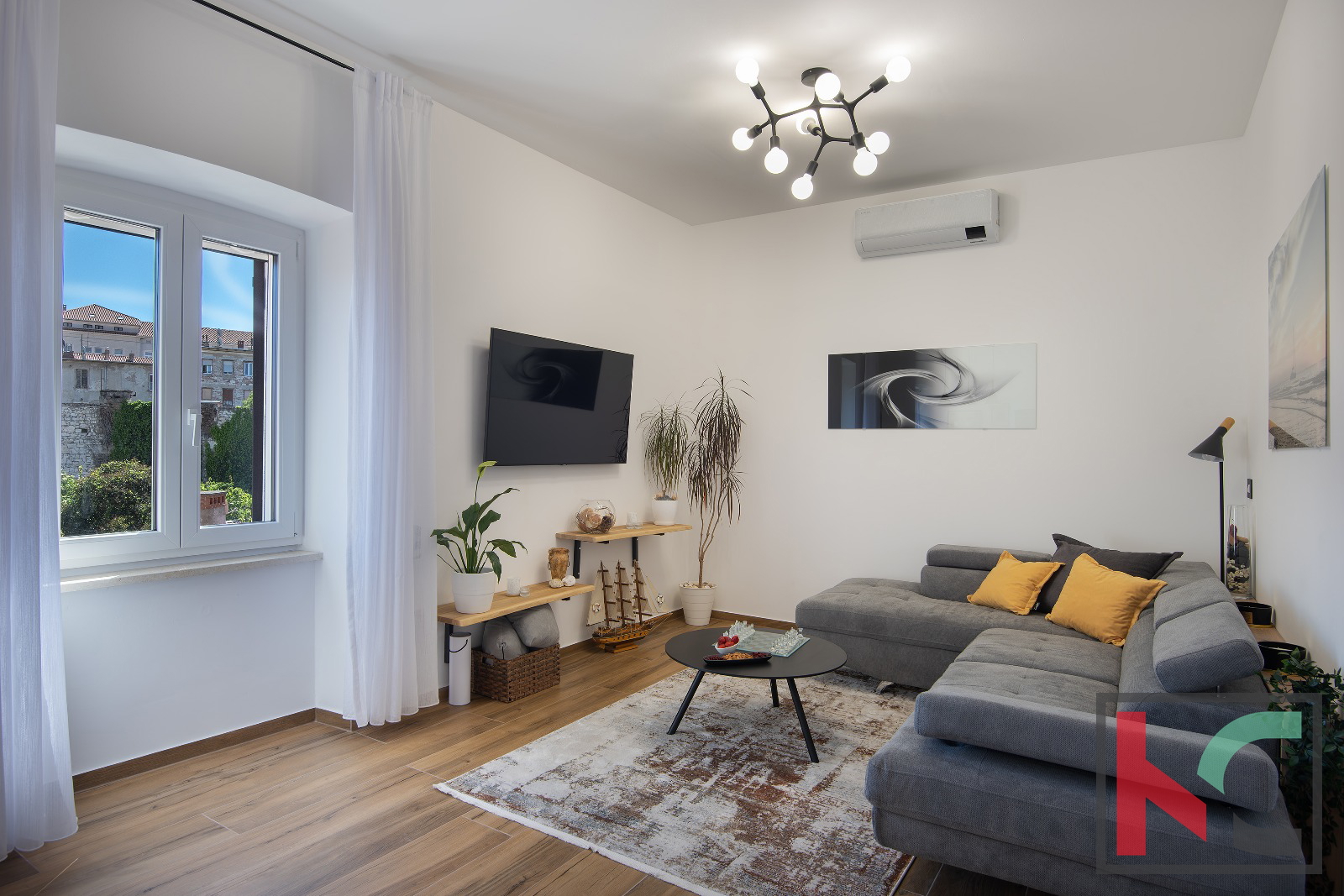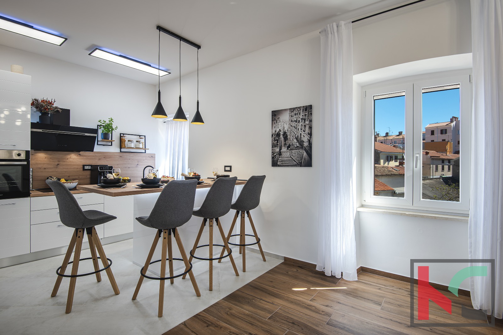 Iz stanovanja je razgled na mestno jedro, kar dodatno poudarja privlačnost nepremičnine.
